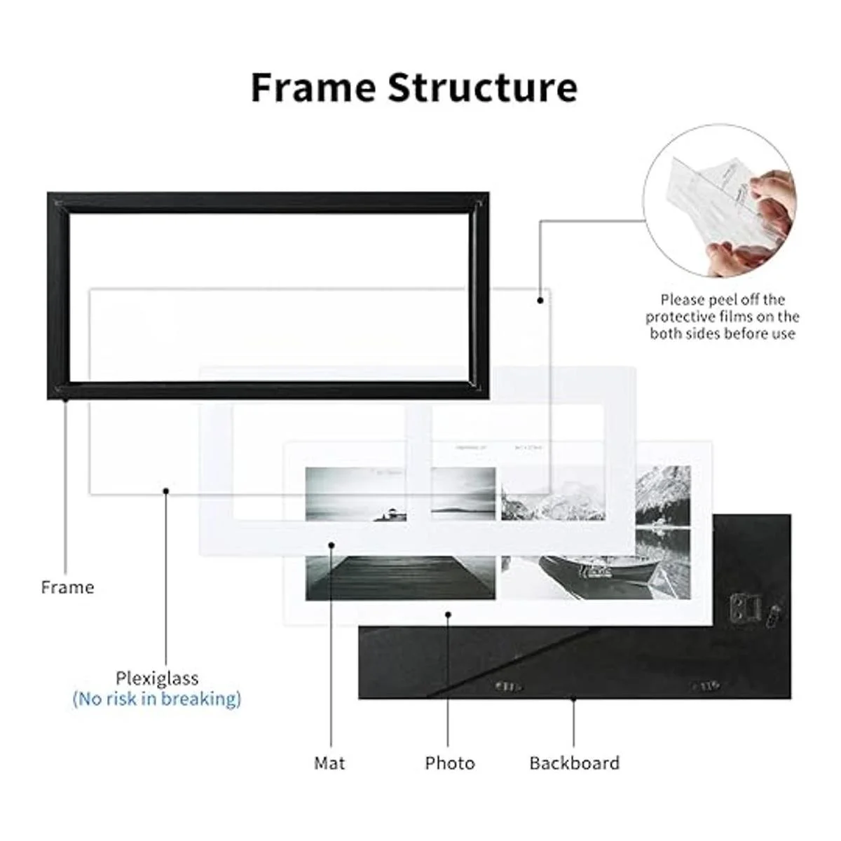 Protección y decoración Aspecto elegante y elegantes marcos de fotos negros de 2 aberturas de 5 x 7 pulgadas que funcionan en muchos estilos de decoración. El marco de fotos para 2 fotos de 5 x 7 pulgadas es perfecto para la decoración del hogar, la oficina y el estudio. Hay películas protectoras en ambos lados del plexiglás que lo hacen libre de arañazos. El plexiglás transparente del marco de fotos horizontal no se rompe cuando cae accidentalmente al suelo, es más seguro que el vidrio real y evita que tú y tus hijos se dañen