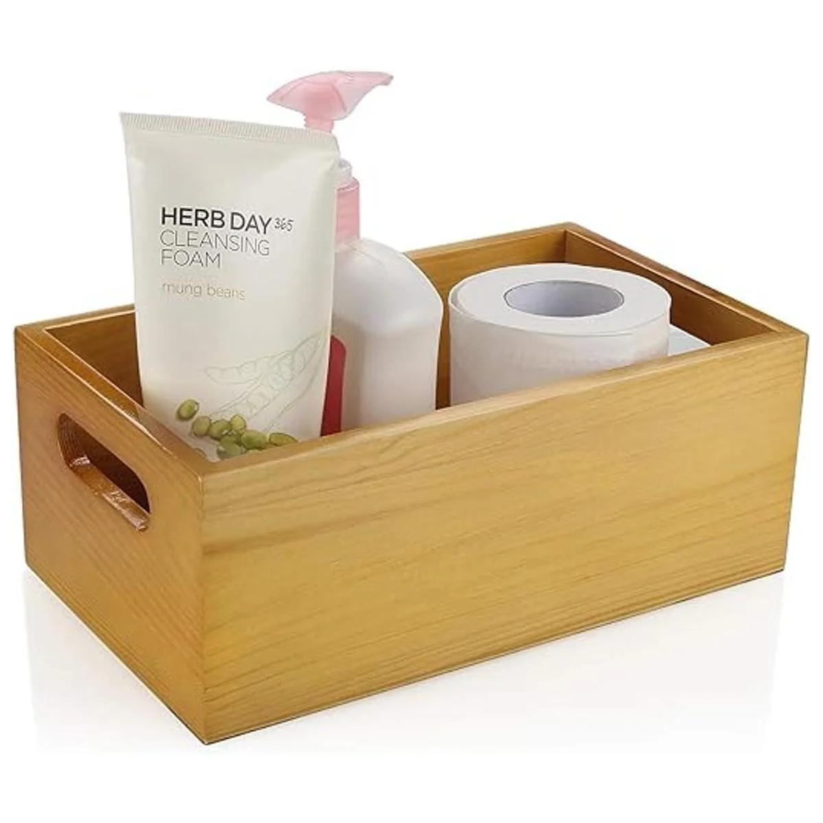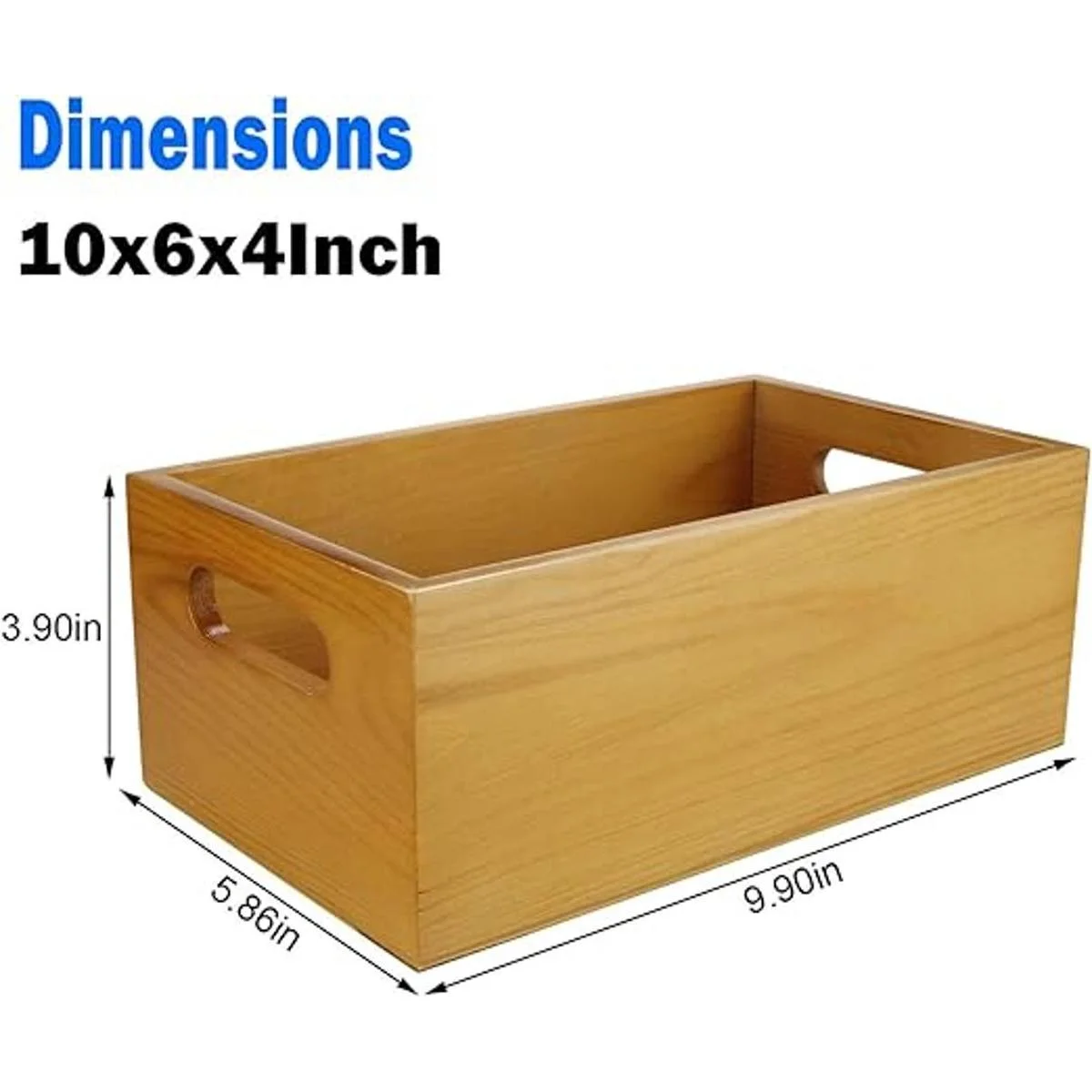 Un organizador de madera de pino seleccionado, 4 paquetes, contenedor de almacenamiento de madera de 6 x 10 pulgadas con asa para baño y cocina