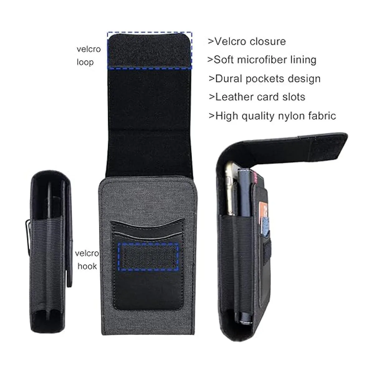 Funda vertical de nailon para dos teléfonos, diseñada para todos los smartphones grandes de hasta 7 pulgadas, compatible con iPhone 13 Pro Max, 12 Pro Max, Xs Max, 8 Plus, para Moto G22, Edge 30 Pro, Edge 2022, Edge 20 Pro, E40, G Play, para Galaxy Note 20 Ultra, Note 10, S22 Ultra, S22 Ultra, 21, S1 0, S20, A53, A32, A12, A22, 10 Pro, Pixel 6