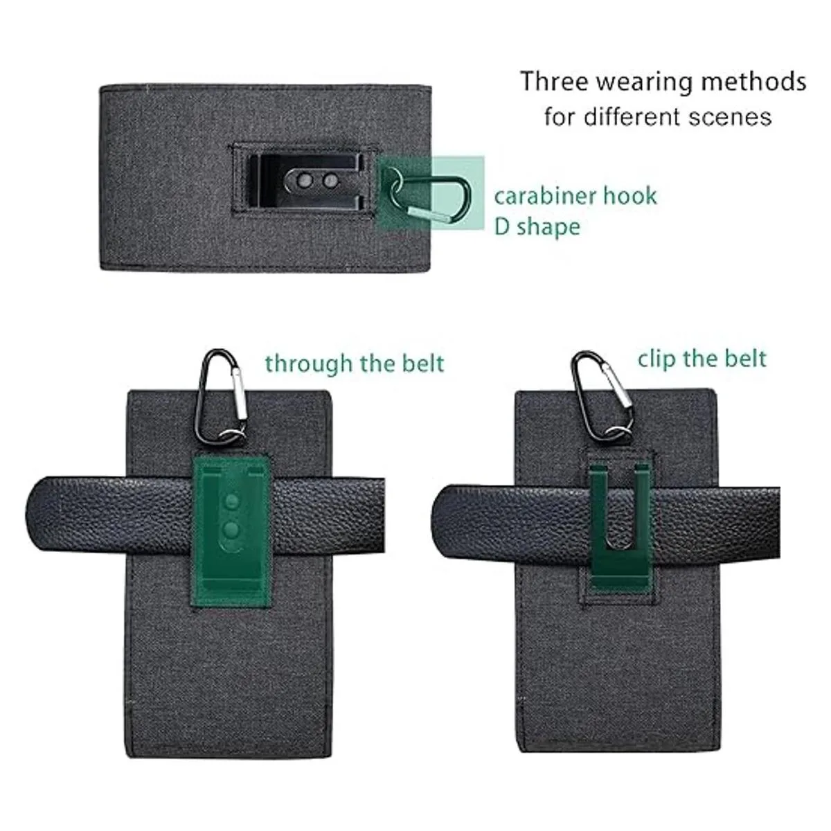 La funda de nailon con solapa de cierre de velcro proporciona tres métodos de uso: gancho de mosquetón, clip de metal y bucle, se adapta a las diferentes escenas de la vida diaria, camping, viajes, senderismo, ciclismo, entrenamiento, trabajo al aire libre y trabajo de construcción