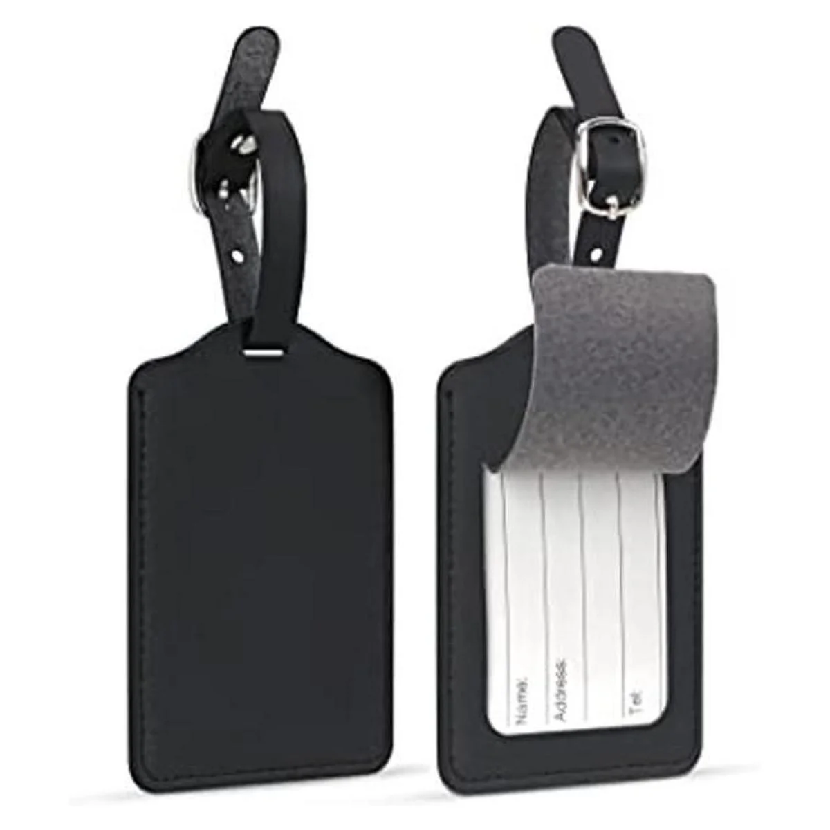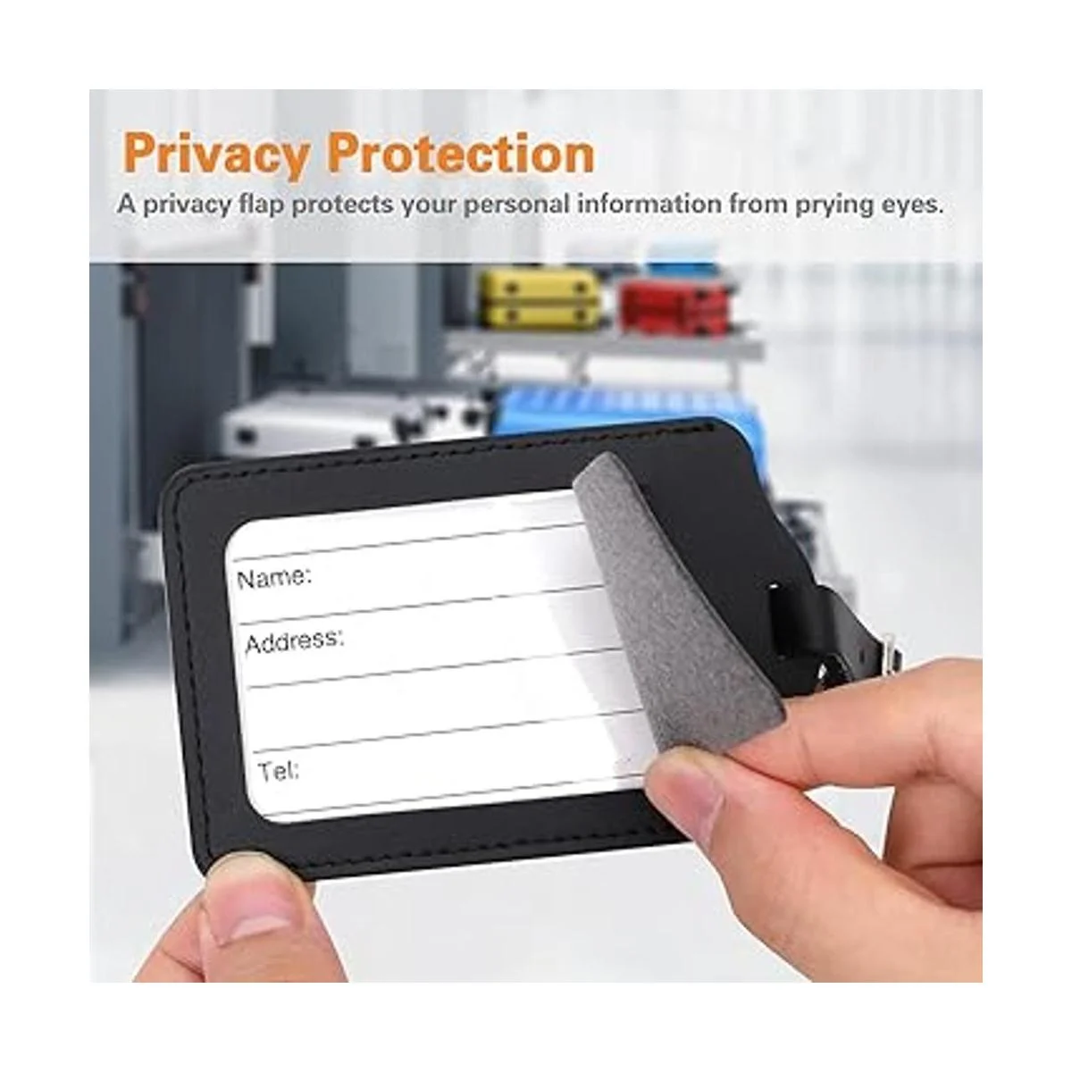 Unaone Etiqueta de equipaje, paquete de 2 etiquetas de equipaje de piel sintética de alta calidad para maletas con correa ajustable, cubierta de privacidad, etiquetas de equipaje de viaje, etiquetas de nombre, accesorios de viaje, etiqueta de identificación de nombre del avión, color negro