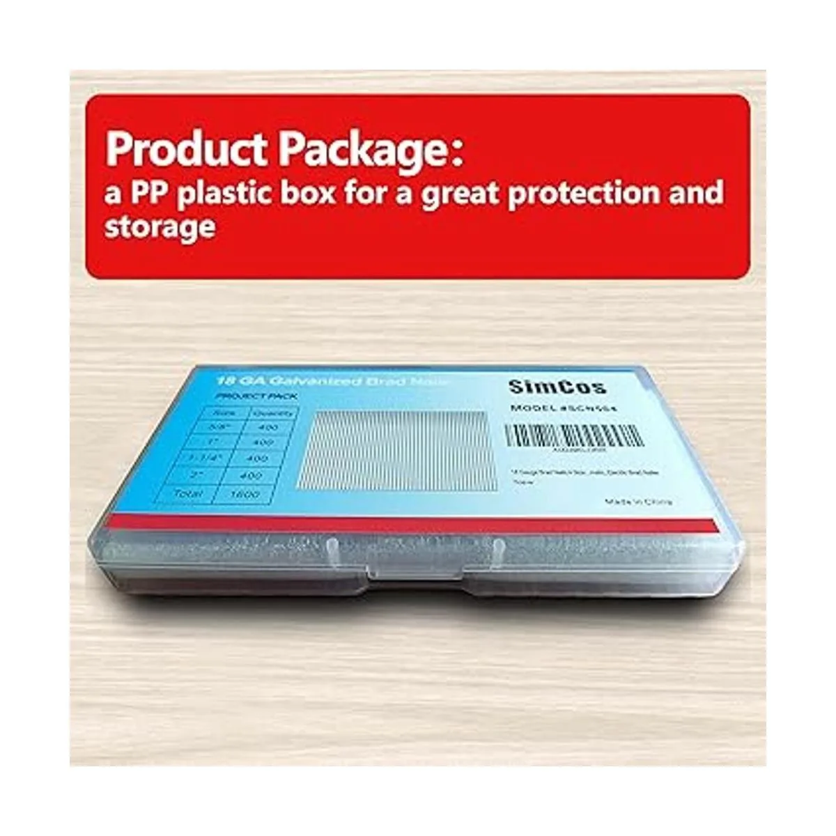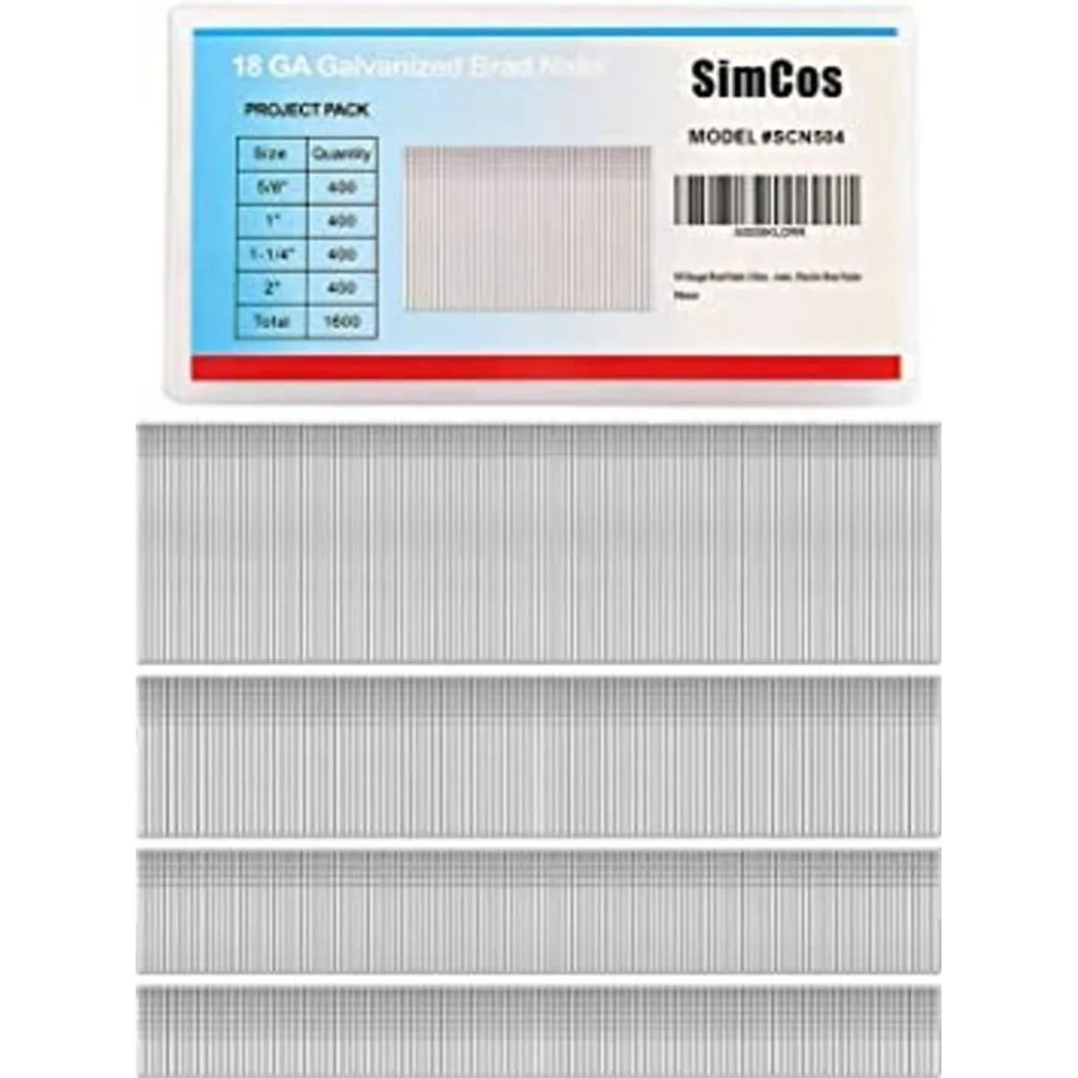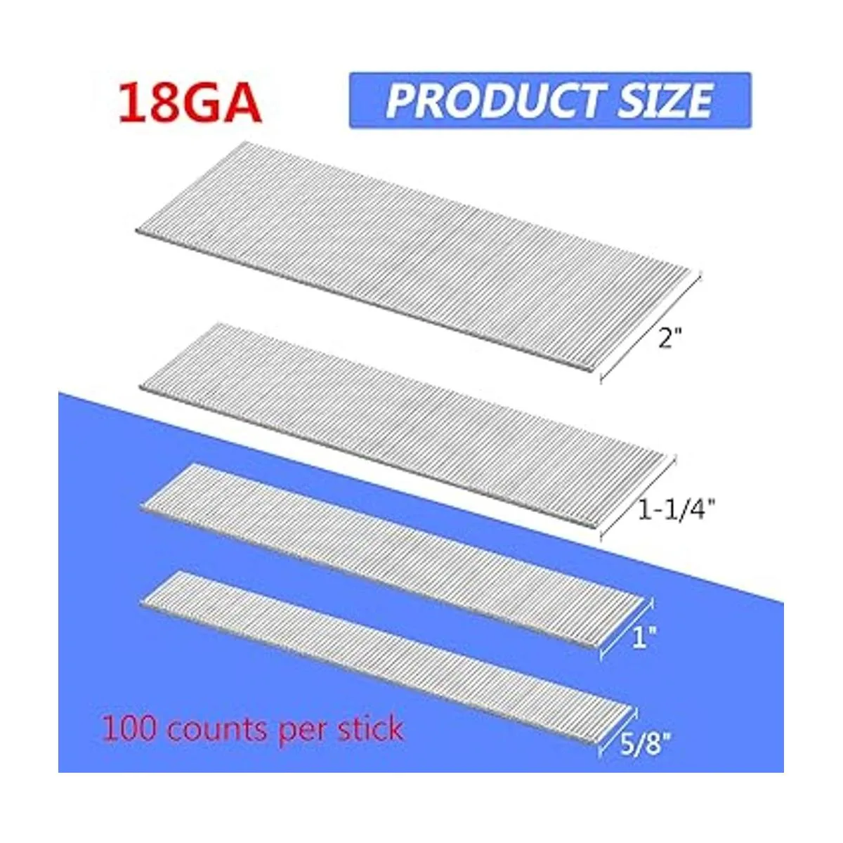 Uñas de calibre 18, 4 tamaños 2 pulgadas, 114 pulgadas, 1 pulgada, 58 pulgadas, 1600 unidades galvanizadas de 18 GA, uñas de acabado surtido y pequeño para clavadoras neumáticas y eléctricas