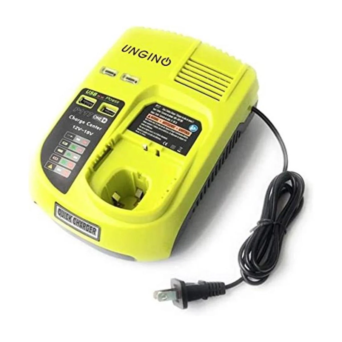 UNGINO P117 Cargador de batería para Ryobi One NiCd, NiMh, litio, 12 V, 18 V, P117, 3 A, 2 puertos USB