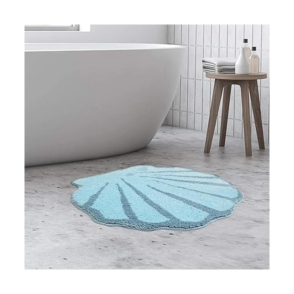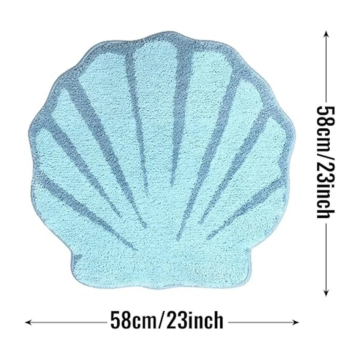 UNIBATH Alfombra de baño con diseño de concha de mar para niños con dibujos animados, decoración de baño de mar, color azul acuático, felpa, antideslizante, absorbente y lavable