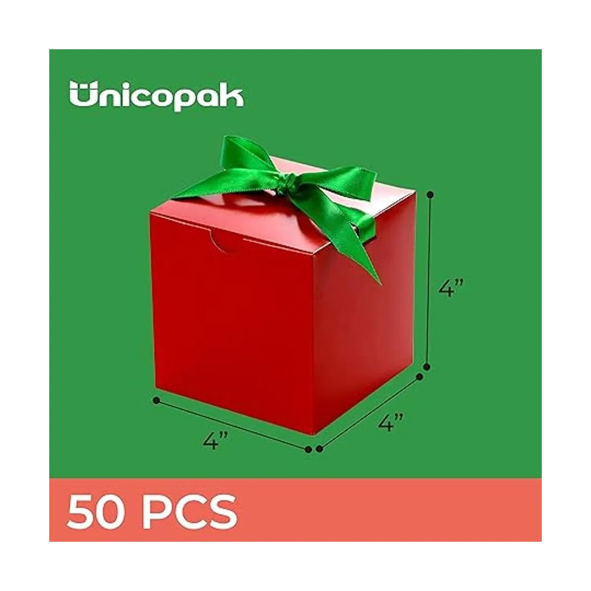 UnicoPak Cajas de regalo rojas de Navidad de 4 x 4 x 4 pulgadas, 50 unidades, cajas de regalo, pequeñas cajas de regalo con tapas para adornos de regalo, velas, tazas, vasos, manualidades, para cumpleaños, boda, Navidad