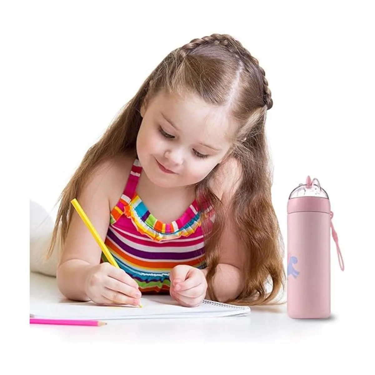 Fácil de transportar: la correa de silicona en la tapa es de tamaño perfecto para manos pequeñas. Puede fijar el llavero para una solución de transporte cómoda y sencilla