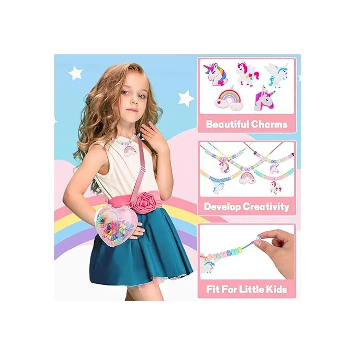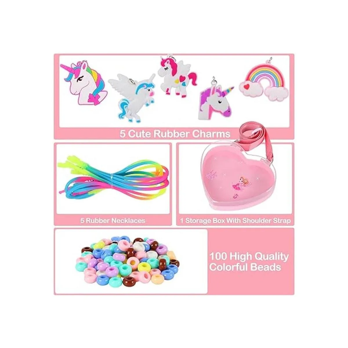 Unicorn Jewelry Making Kit, 5 Rubber Necklaces and Charms with 100 Big Holes Beads Toy Set, Beading Arts and Crafts, Best Gifts for Girls Preschooler Toddlers Kids Age 3 4 5 6 7 8 9 10 by Flyingseeds