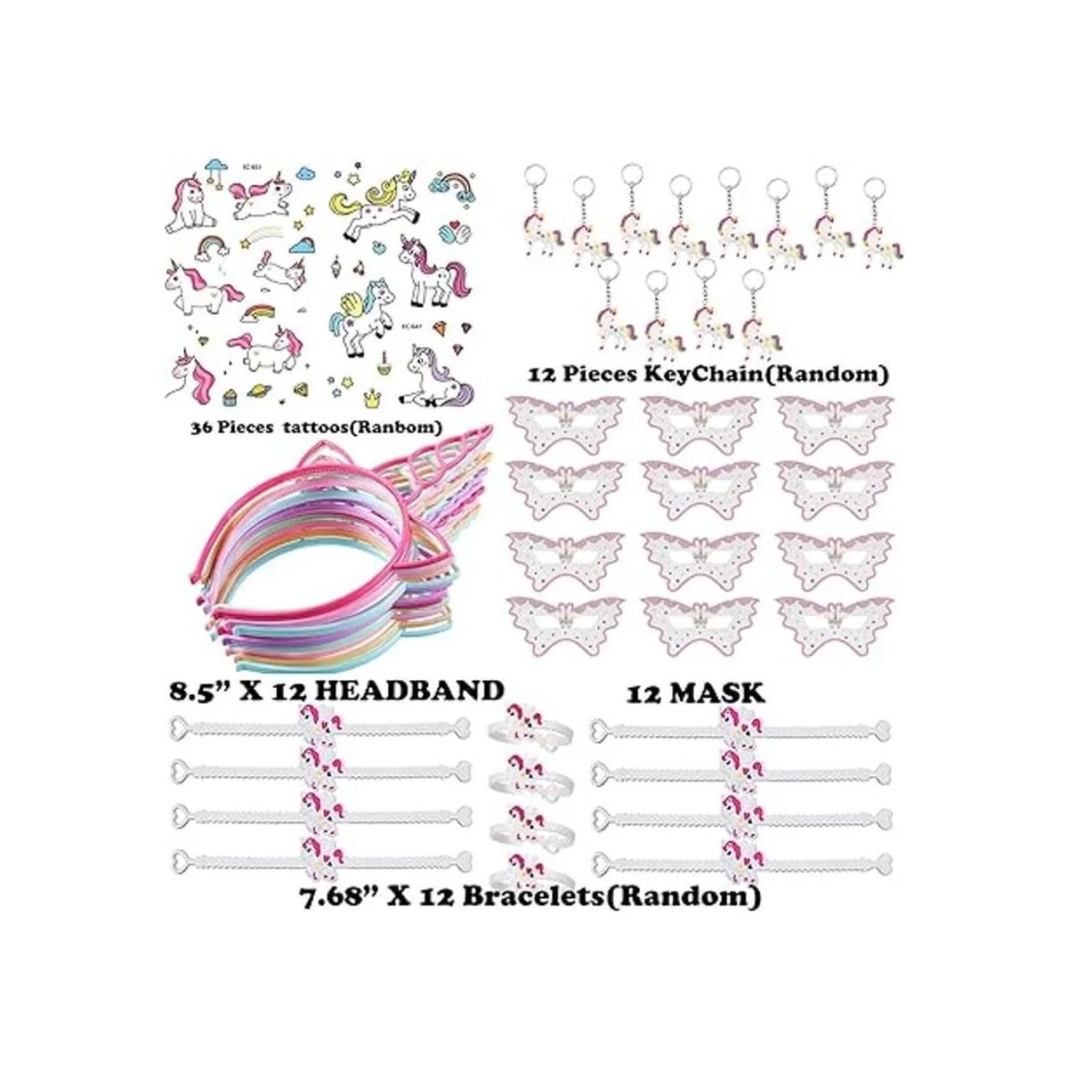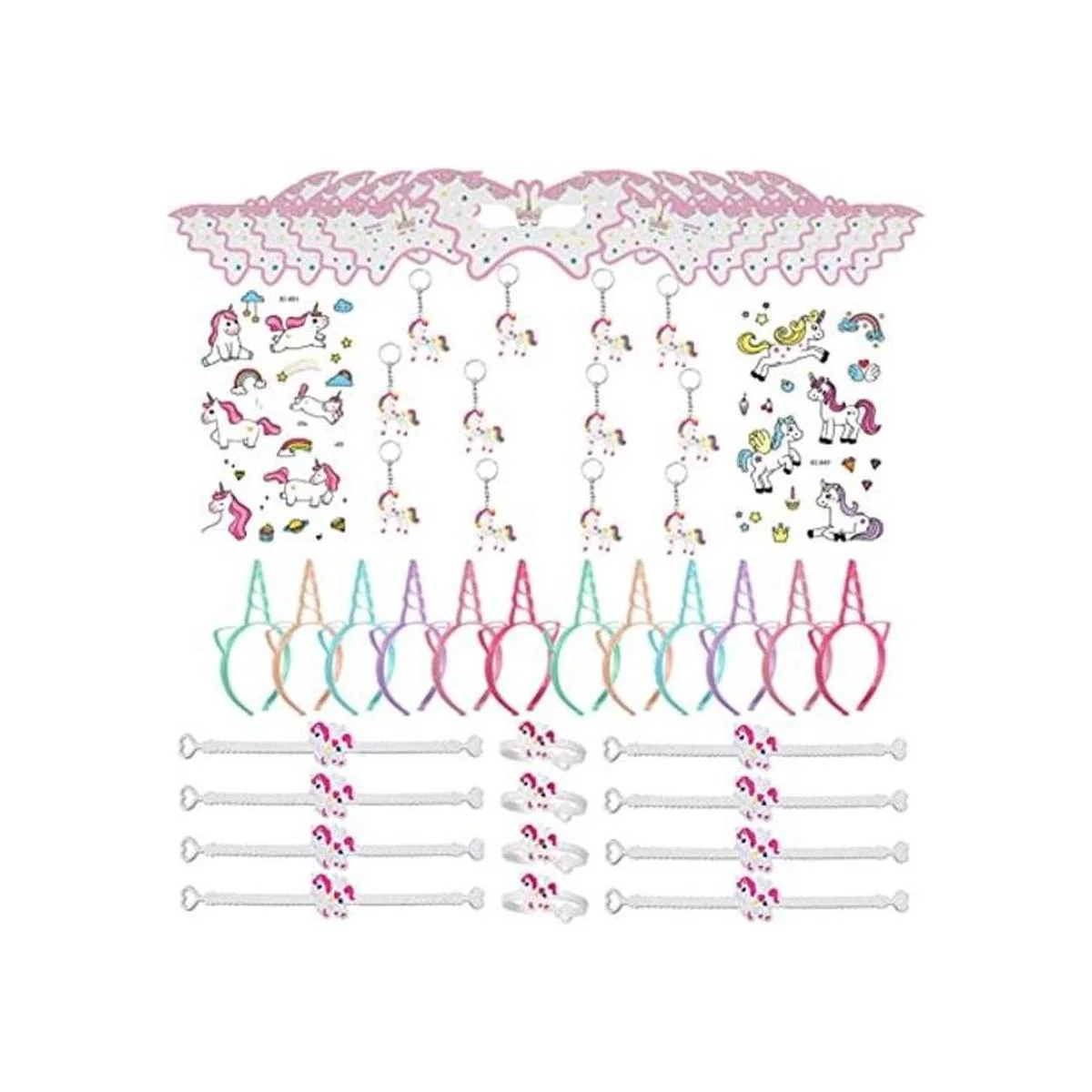 Unicorn Party Favors Supplies, 50 unidades de artículos de temática de unicornio para niños y niñas, decoración de cumpleaños, carnaval, premio, relleno de huevos de Pascua, Unicornio diademas máscara surtido a granel Kit para 12 invitados, arco iris