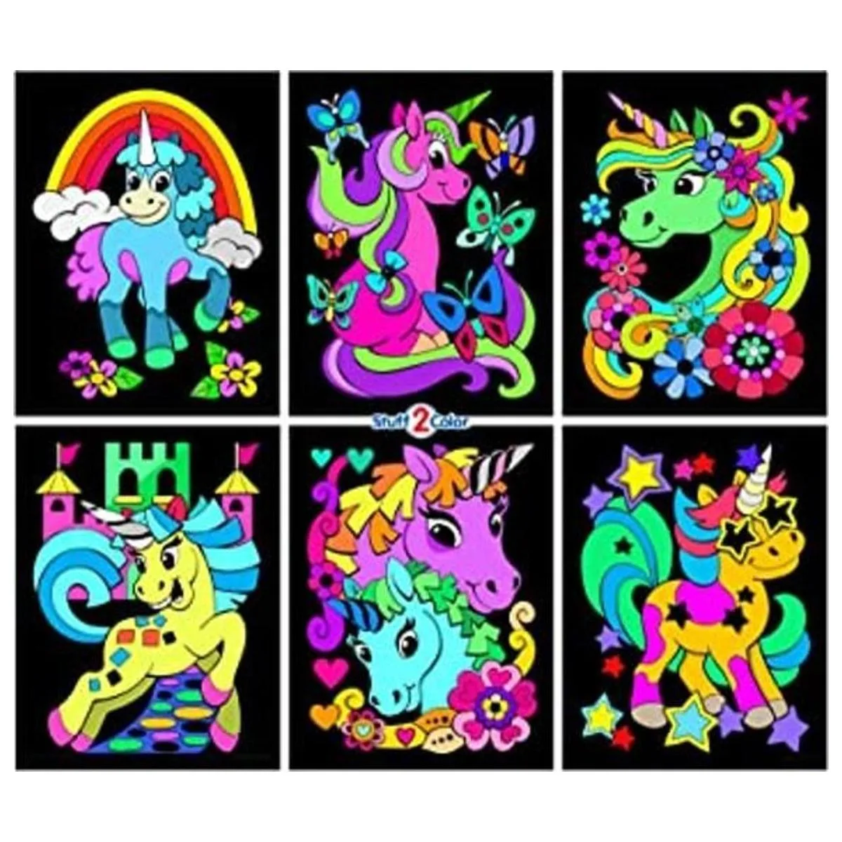 Unicorn Power Paquete de 6 pósteres de terciopelo para colorear para niños, niños pequeños, niñas y niños todas las edades El mejor proyecto de arte y manualidades para fiestas de pijamas, decoración de niños, compartir y más