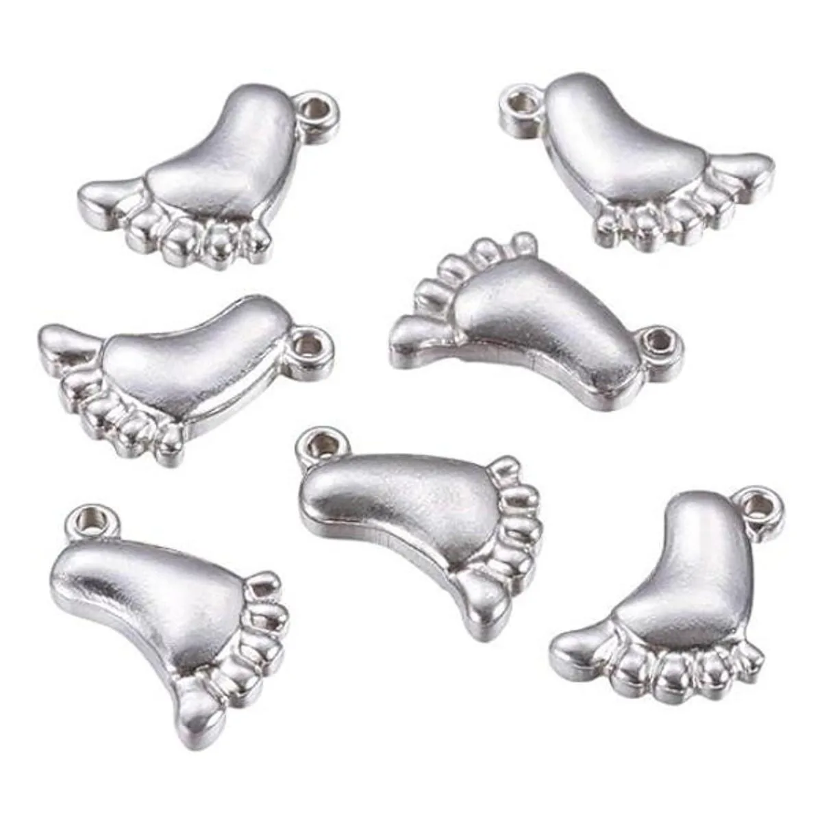 Unicraftale 10 colgantes de huellas lindos primeros pies encantos de acero inoxidable para bricolaje, collar, pulsera, joyería, fabricación de 0.630 x 0.472 x 0.157 in, agujero 0.039 in