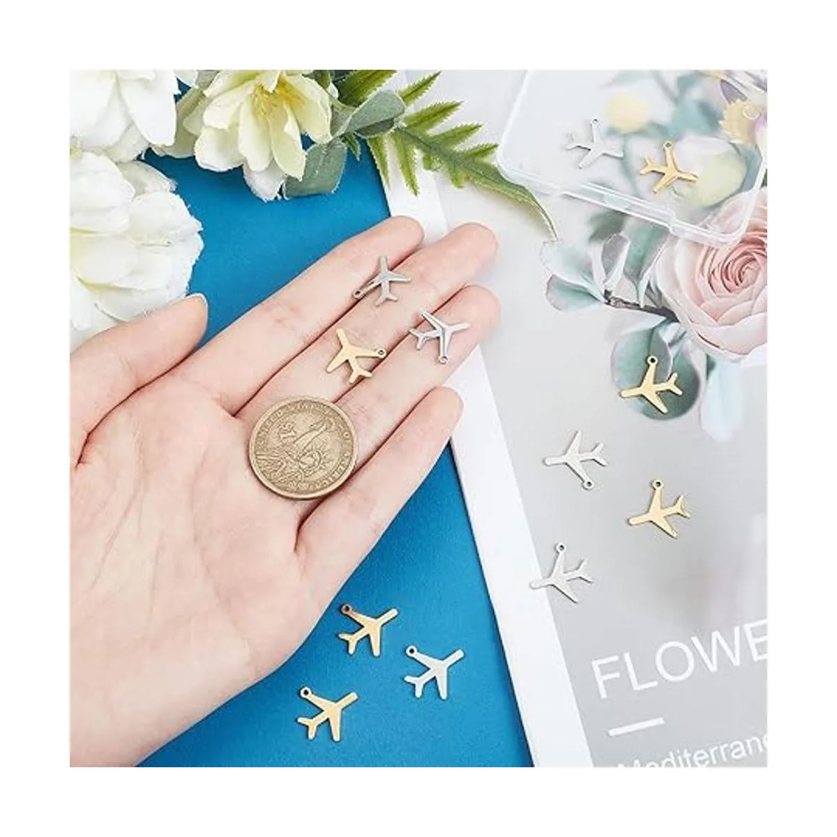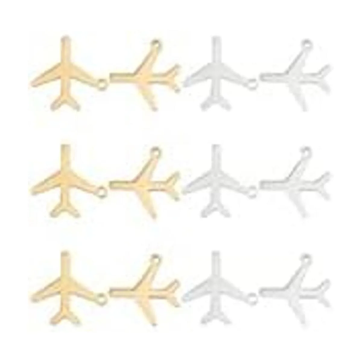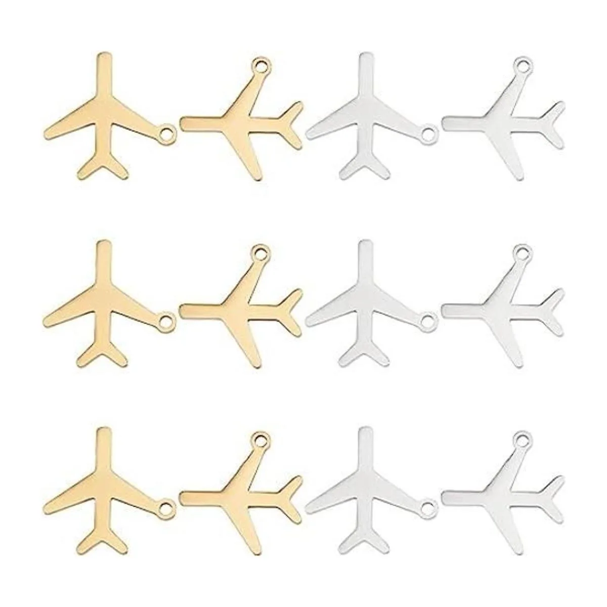 UNICRAFTALE 12 dijes colgantes de avión de pasajeros de 2 colores, colgantes de acero inoxidable, colgantes de metal pequeño para aviones de vehículos, agujero de 0.4 pulgadas para collares, pulseras y joyas