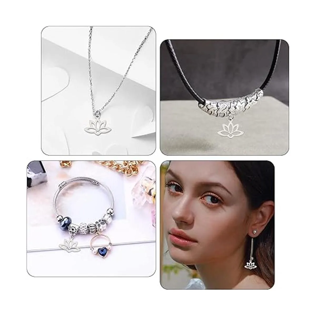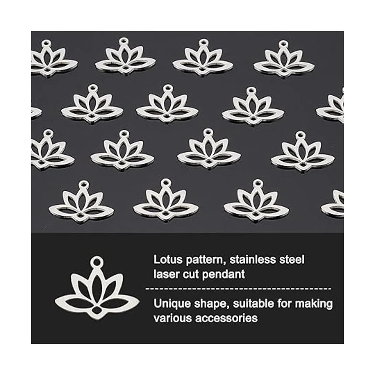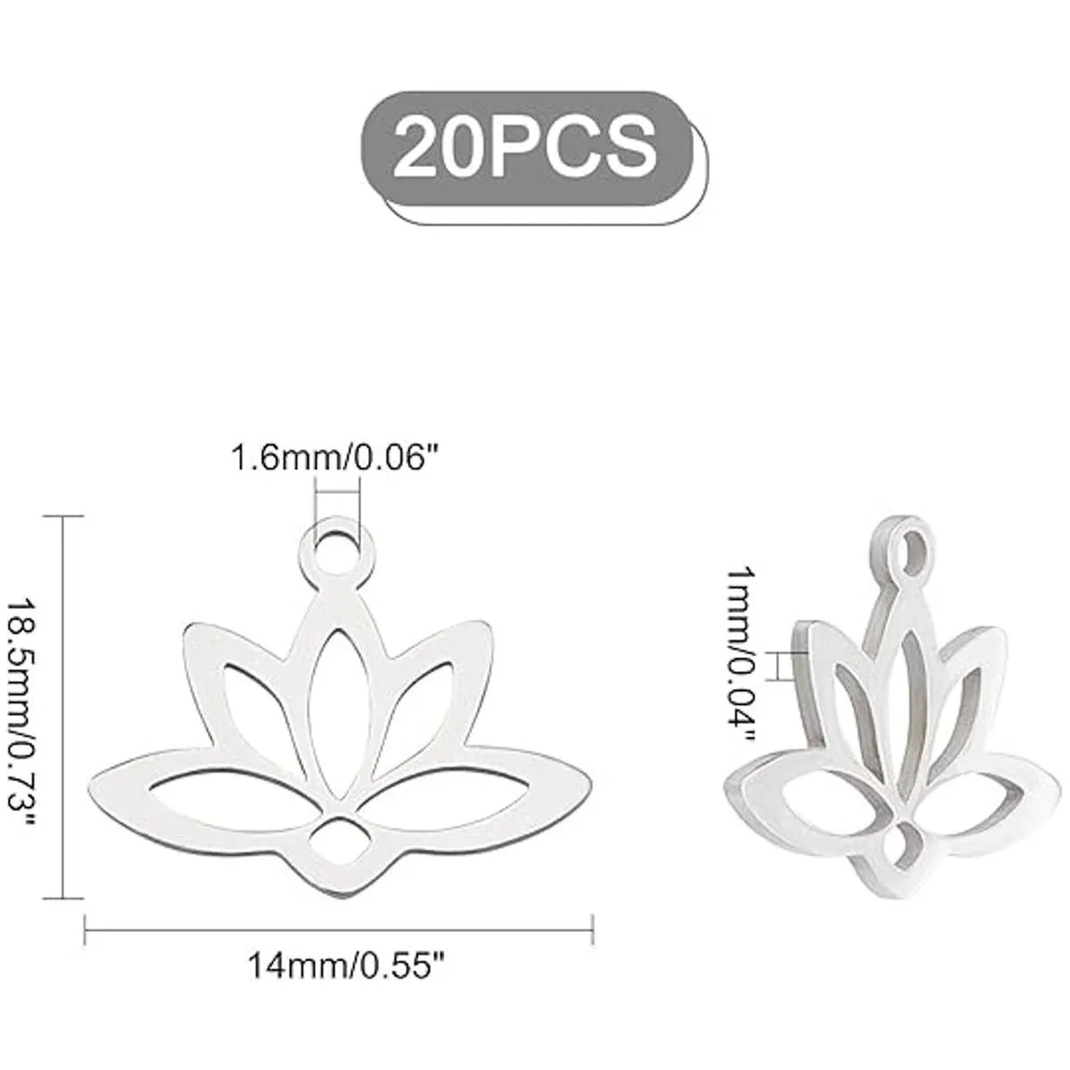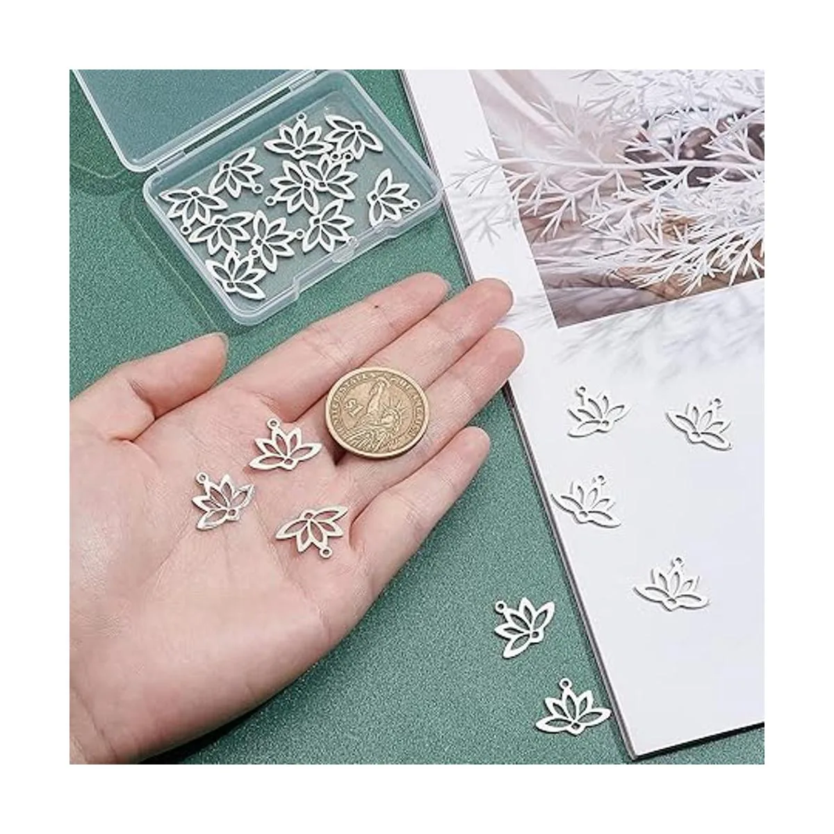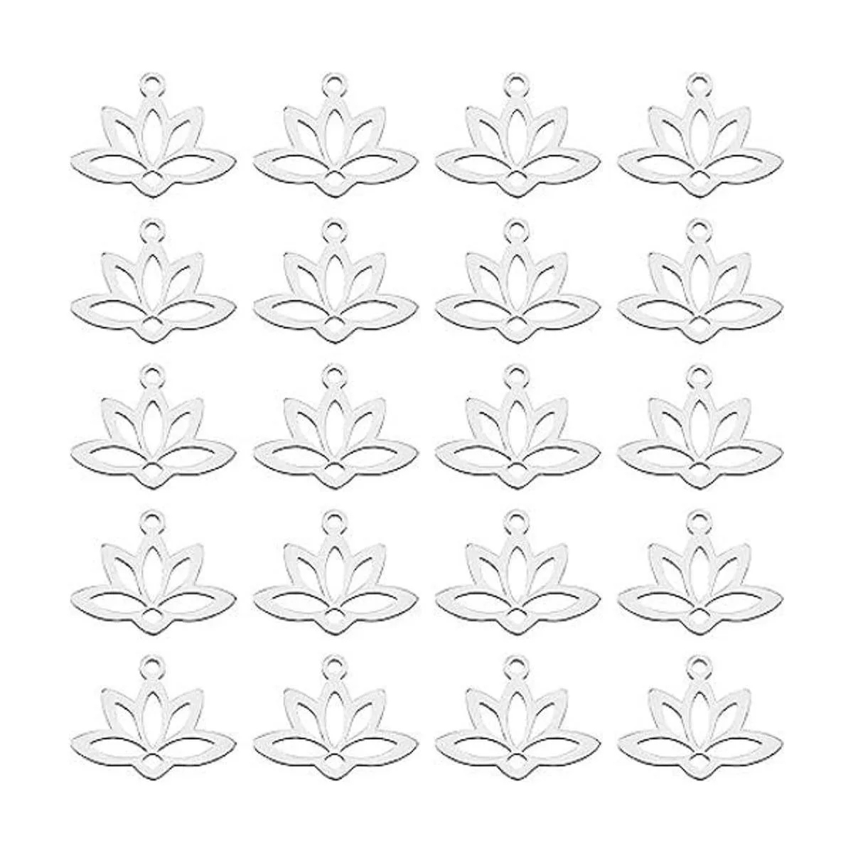 UNICRAFTALE 20 colgantes de flor de loto hueca, de acero inoxidable, con corte láser, para hacer joyas, agujero de 0.063 in, color acero inoxidable