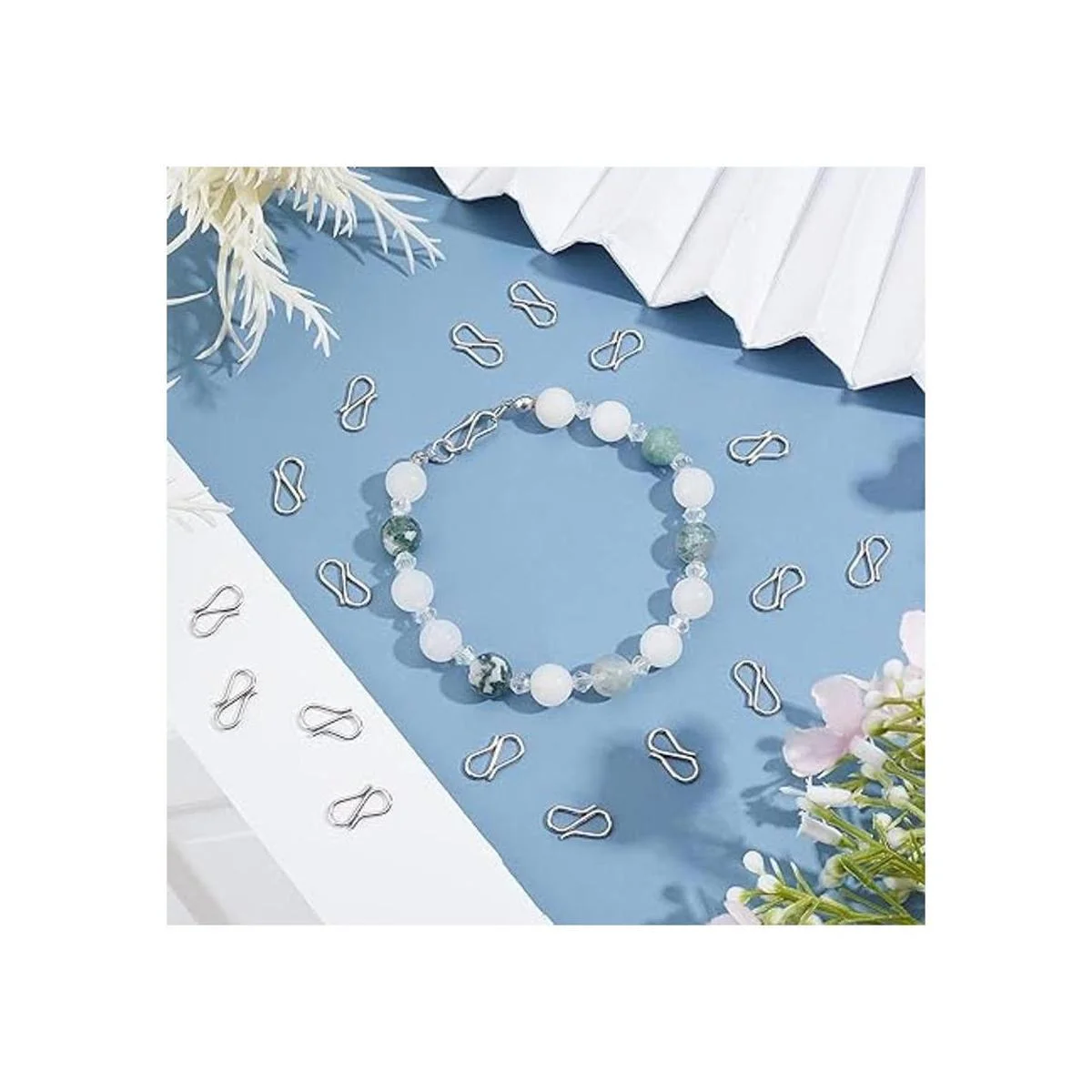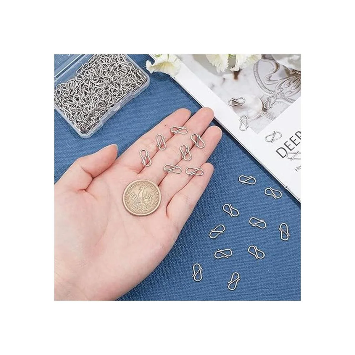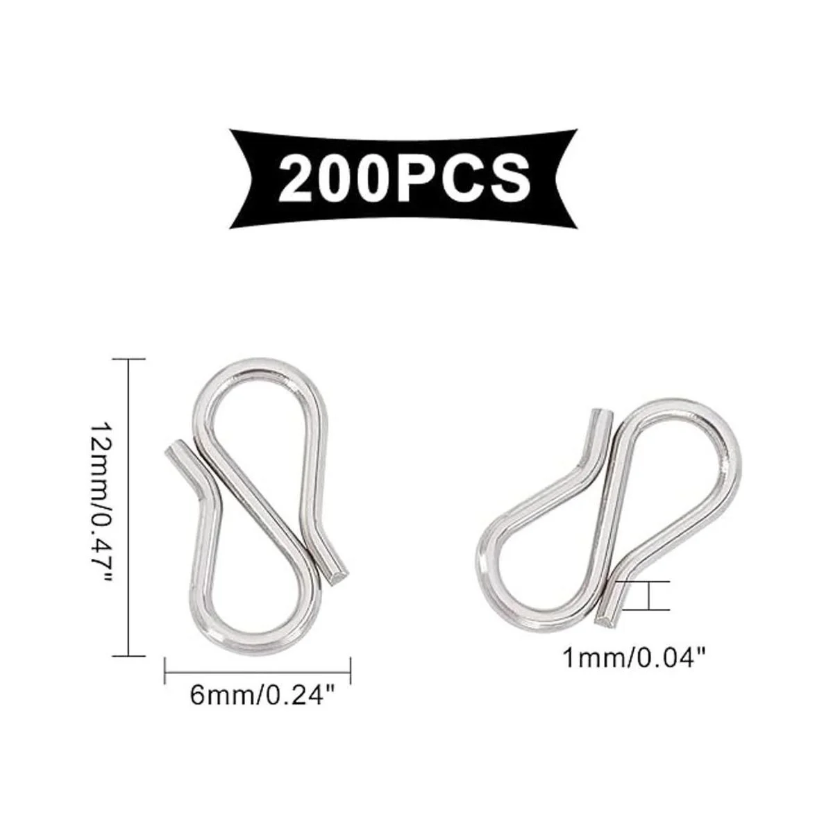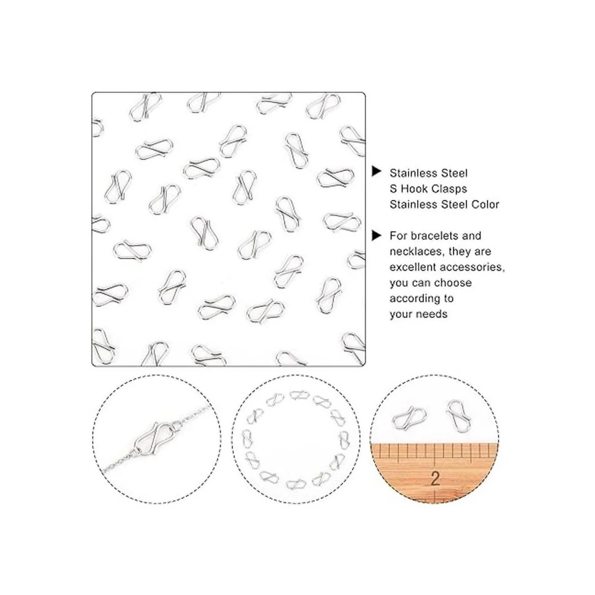 Cierre de gancho en S: estas hebillas de gancho son de color acero inoxidable, 200 piezas en caja, se pueden utilizar para múltiples manualidades, 0.236 in de ancho, 0.472 in de largo, 0.039 in de grosor, diseño abierto, para diferentes necesidades de fabricación de joyas.