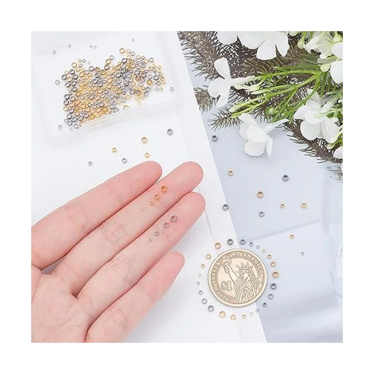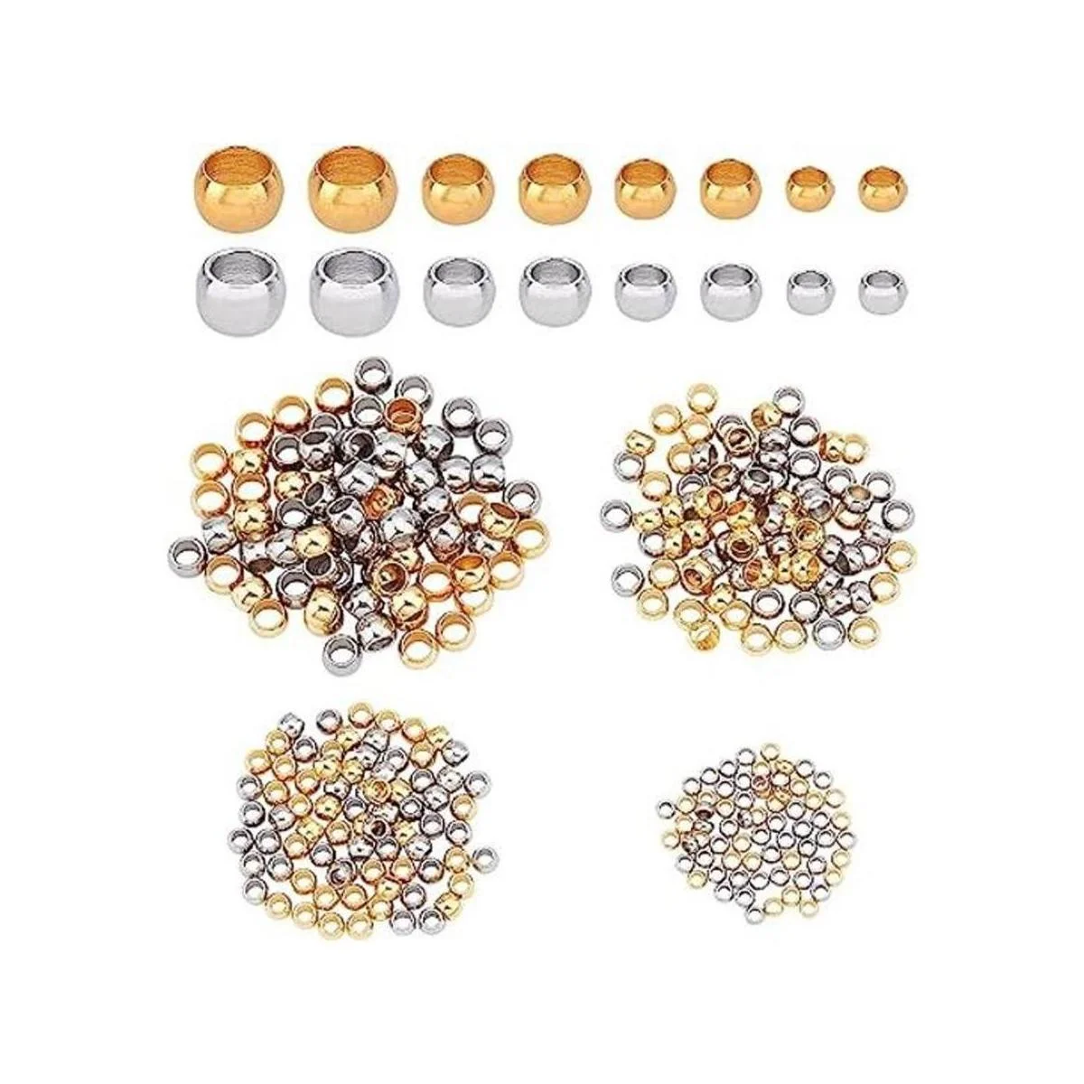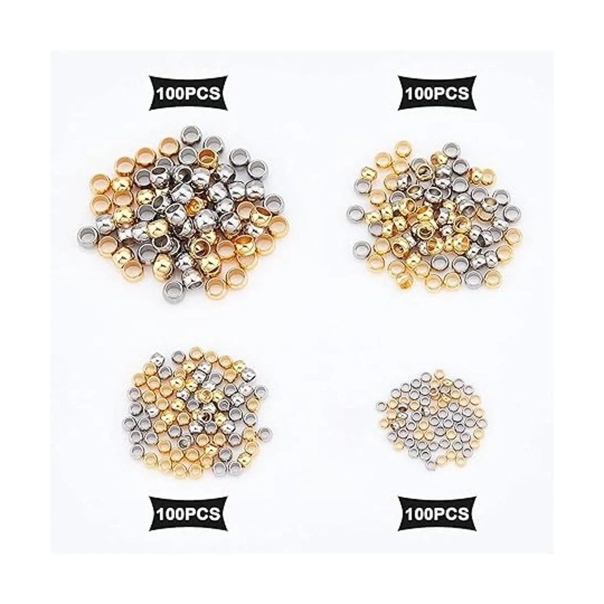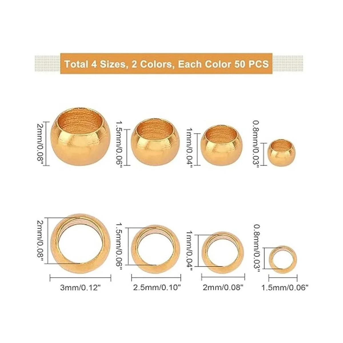 4 tamaños: cuentas de metal en 4 tamaños, adecuadas para hacer proyectos de varios estilos; tamaño y cantidad: aproximadamente 1/2/2.5/0.118 in, agujero de 0.0310.079 in, cada tamaño 100 piezas, contiene alrededor de 400 fundas de cuentas de acero inoxidable en la caja de plástico.