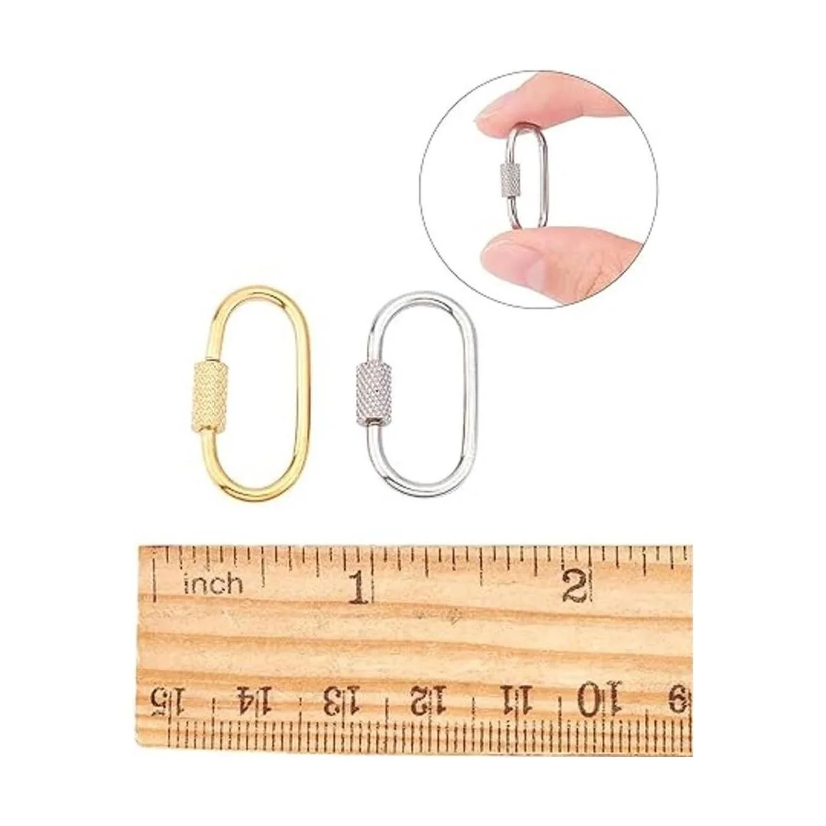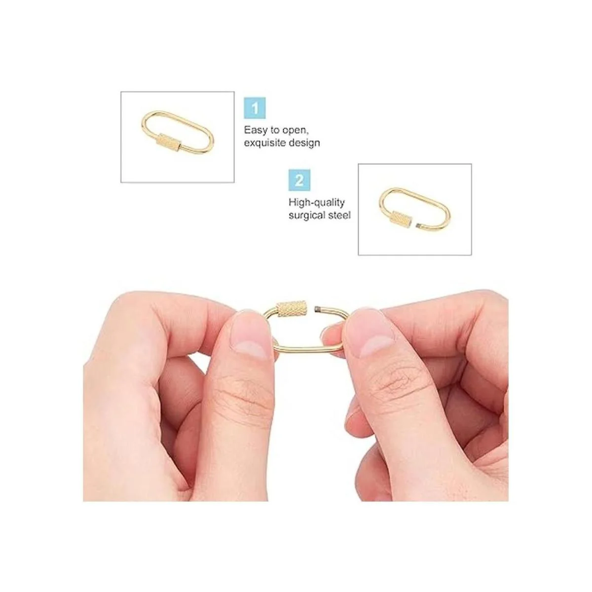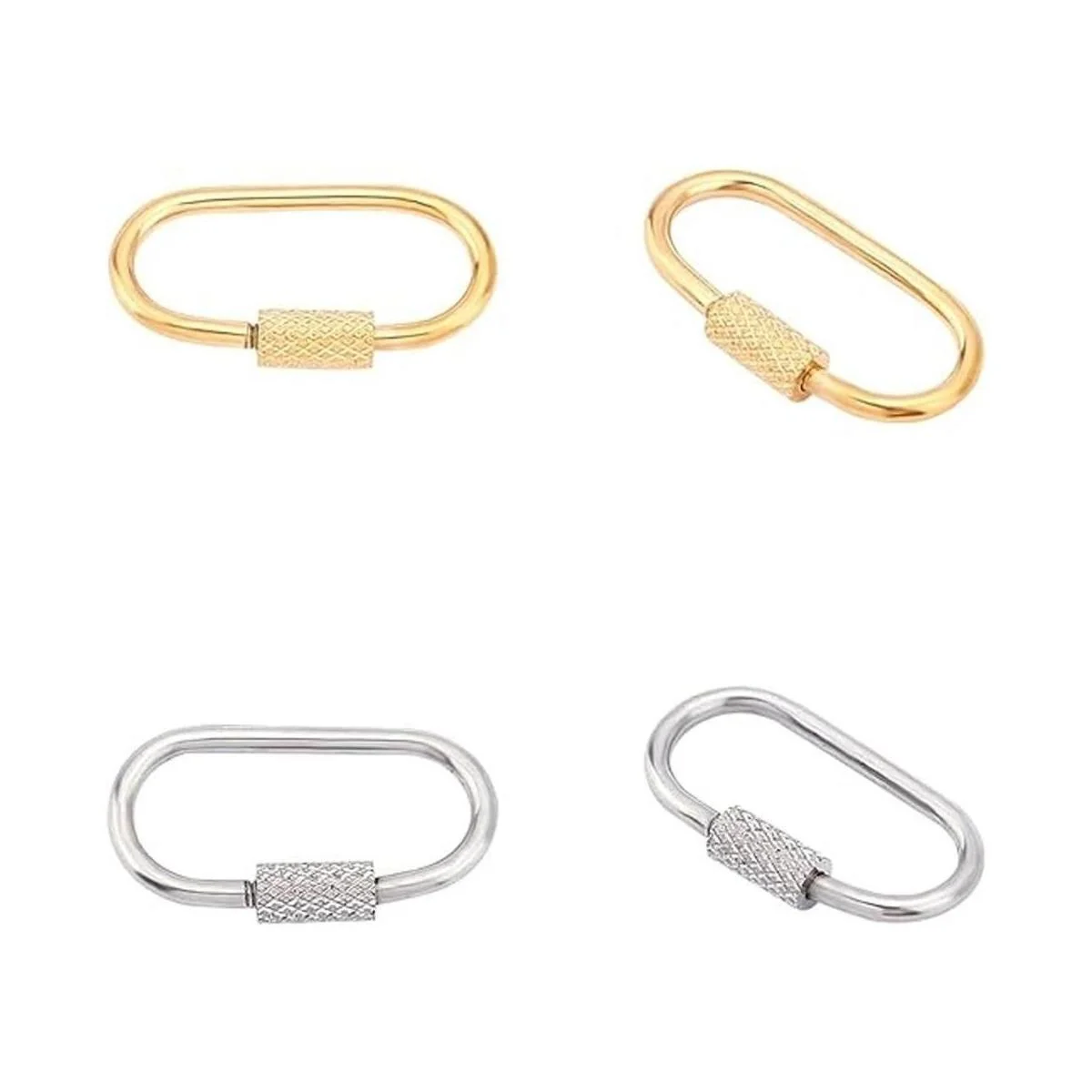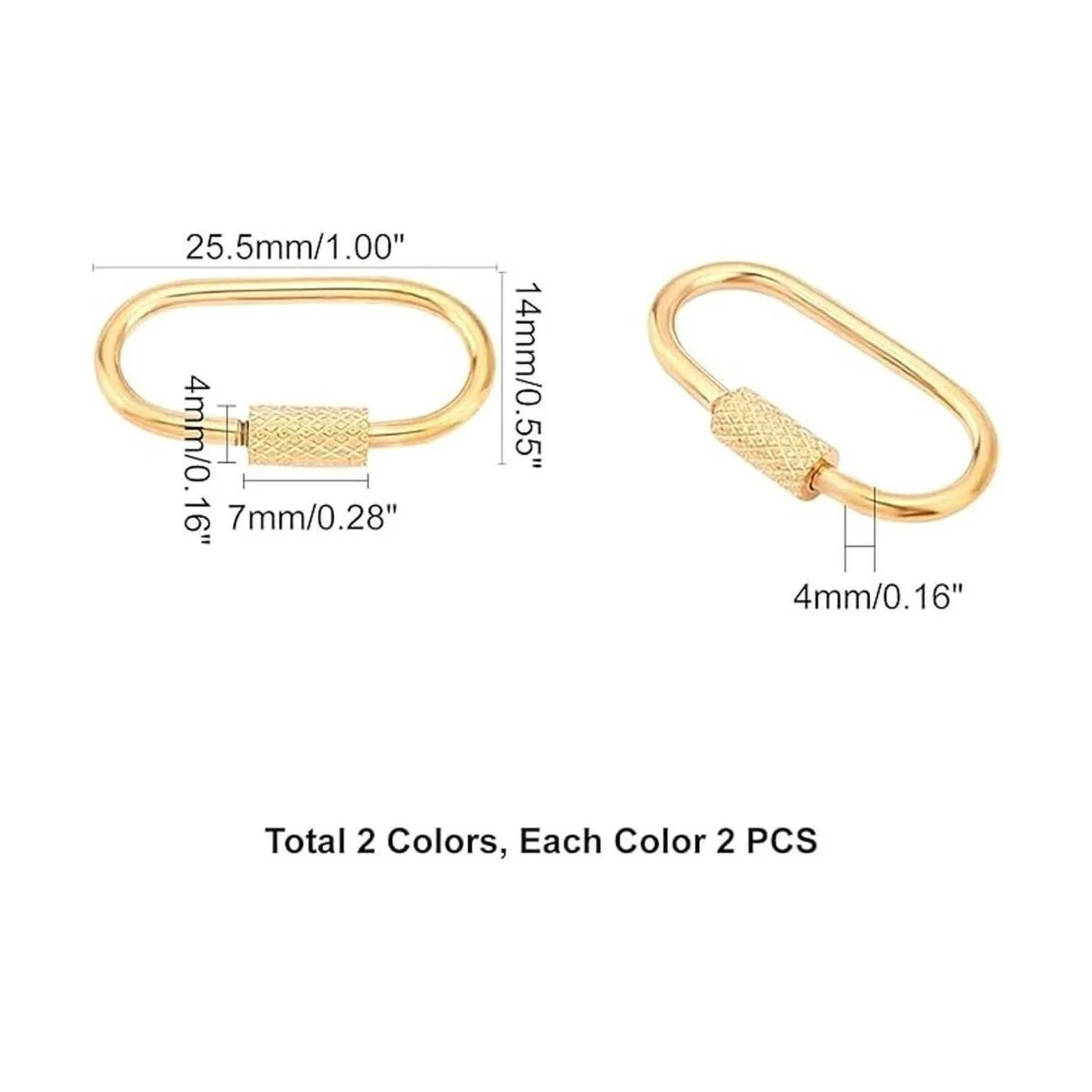 Llavero de 2 colores: acero inoxidable y anillos de llavero dorado que se pueden utilizar fácilmente, alrededor de 0.551 in de ancho, 1.004 in de largo, 0.157 in de grosor; tornillo: 0.157 in de diámetro, 0.276 in de largo, 4 piezas en total.