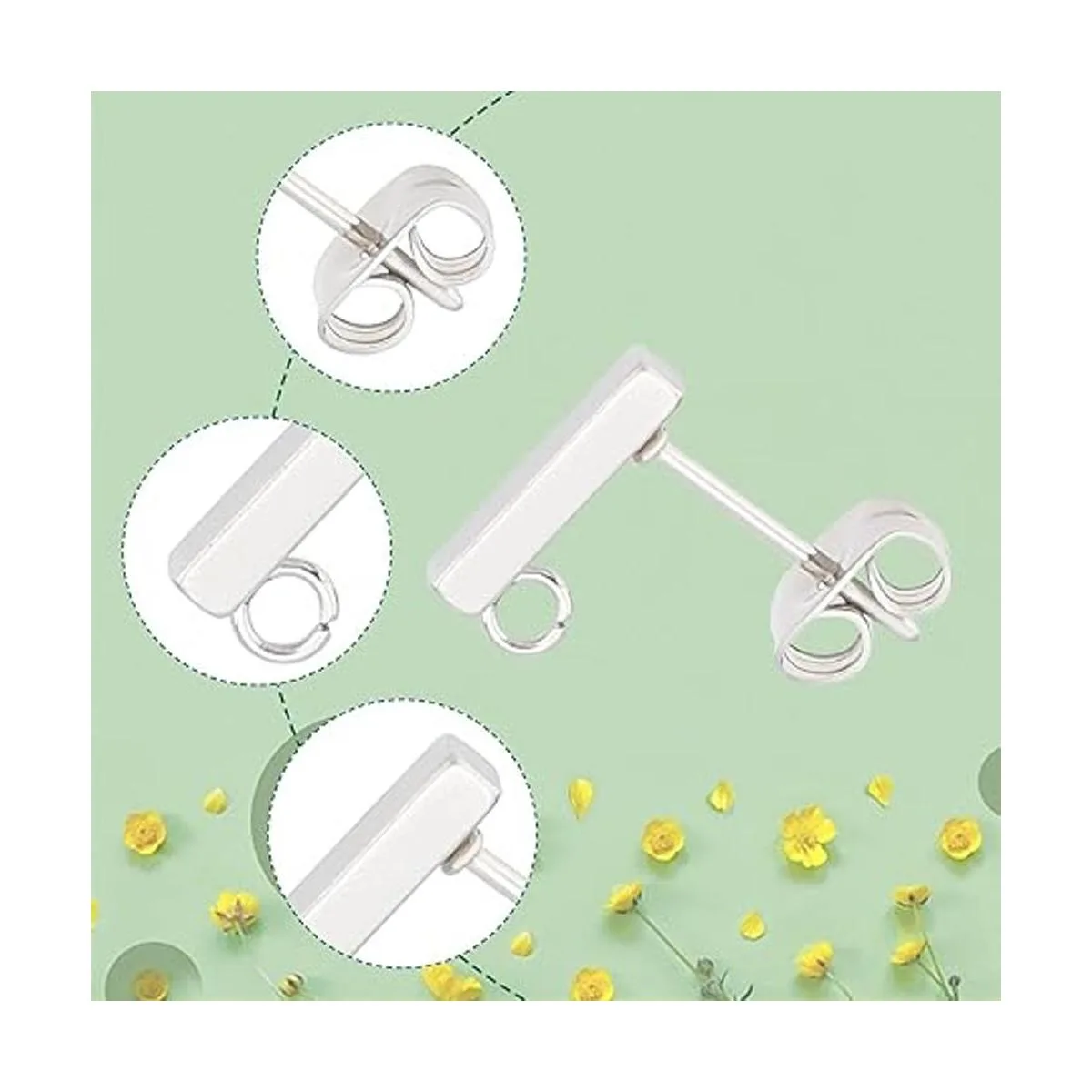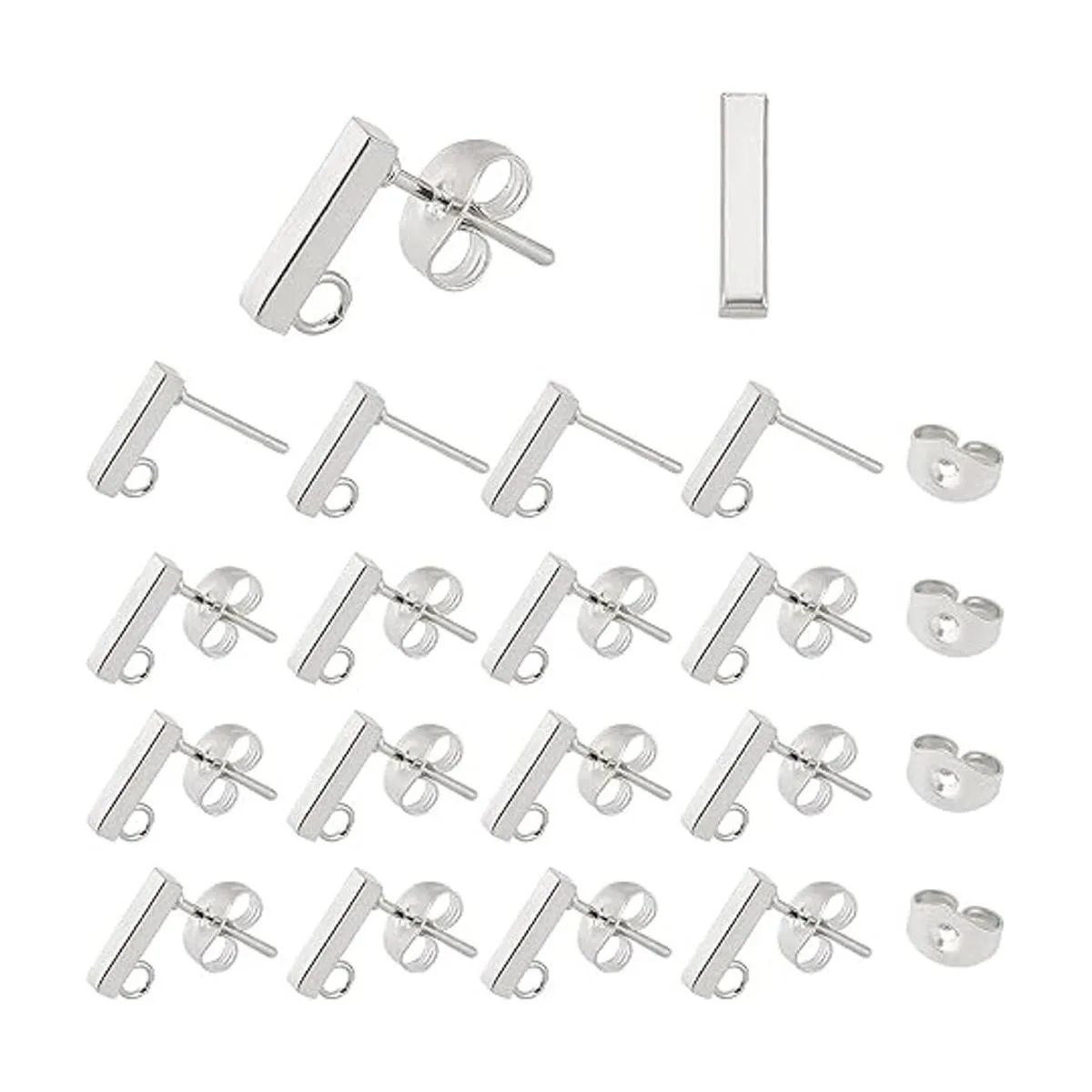 UNICRAFTALE 50 piezas de aretes rectangulares de acero inoxidable con lazo y tuercas para las orejas de 0.031 in para hacer joyas de bricolaje, color acero inoxidable