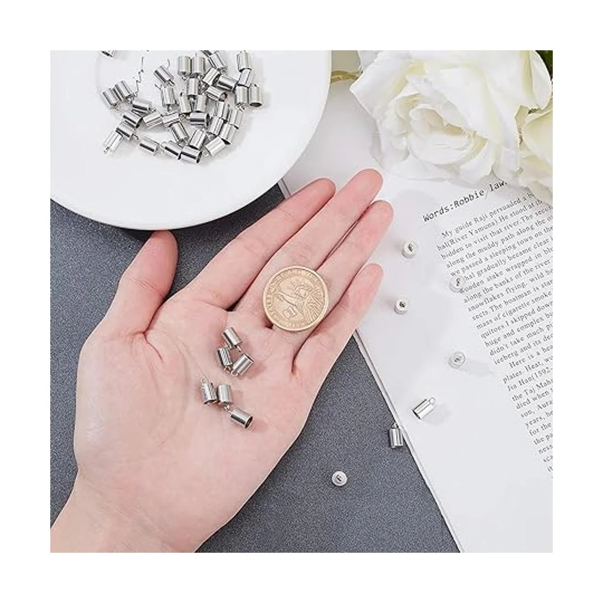 Unicraftale 50 tapas de extremo de acero inoxidable, 0.197 in de diámetro interior de 0.197 in de diámetro interior de tapas de terminadores de cable para encontrar para hacer joyas, kit de acero inoxidable, color