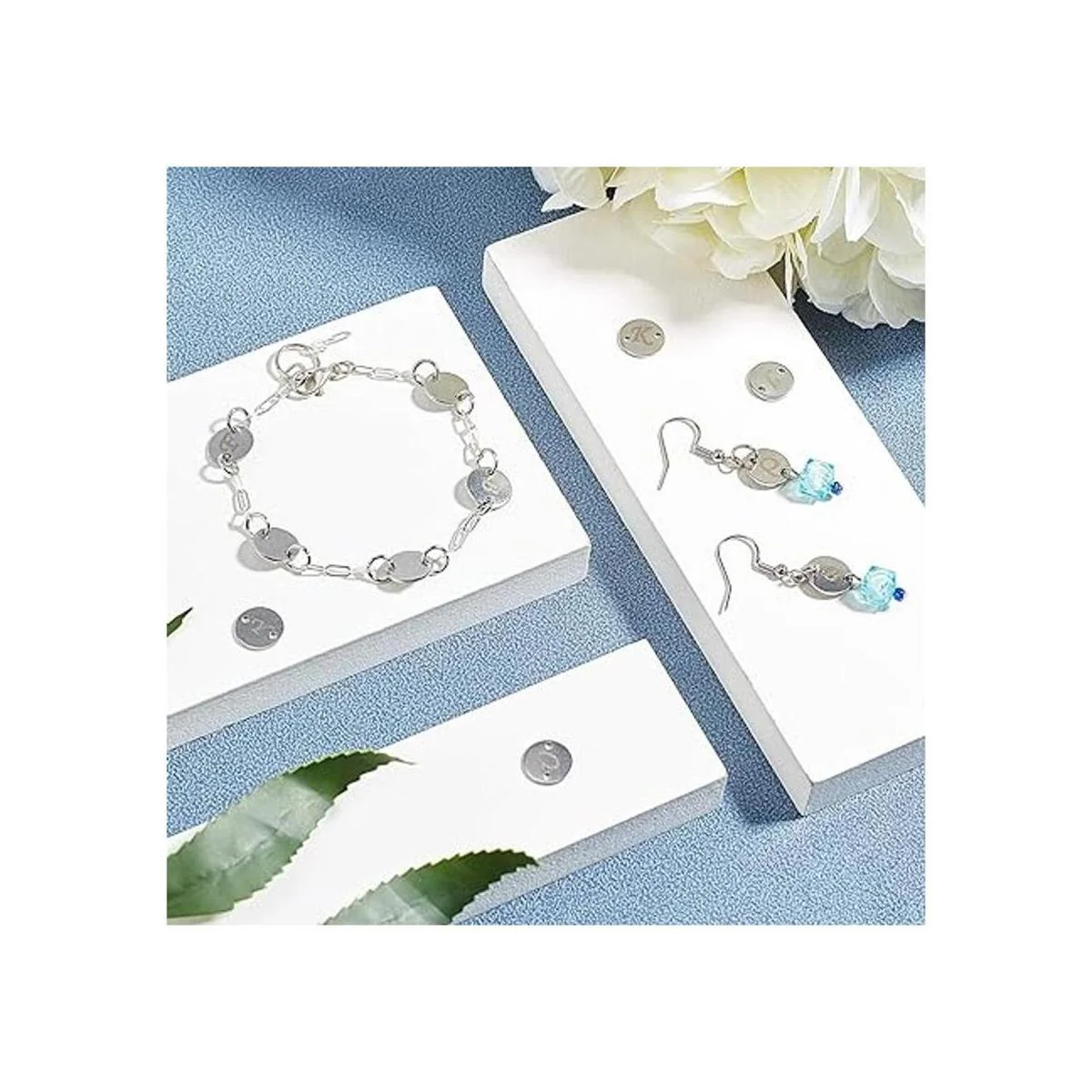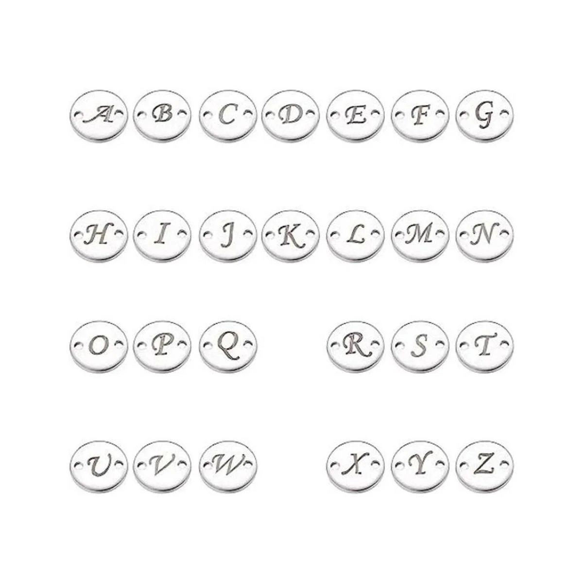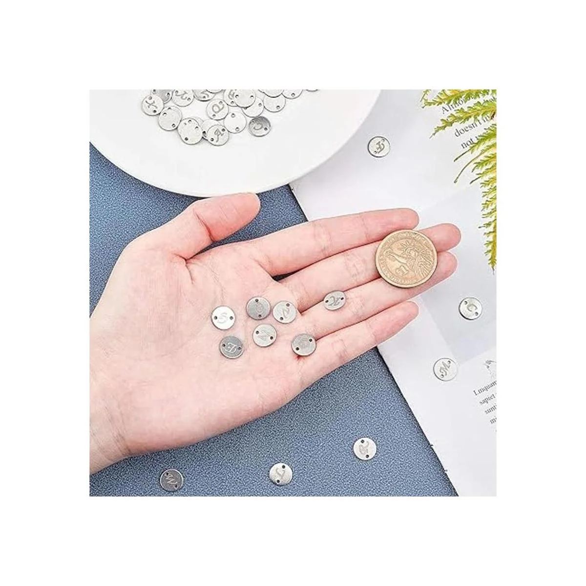 Medición: estos colgantes de letra miden aproximadamente 0.394 in de diámetro, 0.039 in de grosor, agujero: 0.047 in; tamaño adecuado para cualquier persona. Estos abalorios de enlace están empaquetados en una caja de plástico, conveniente para su uso diario y almacenamiento.