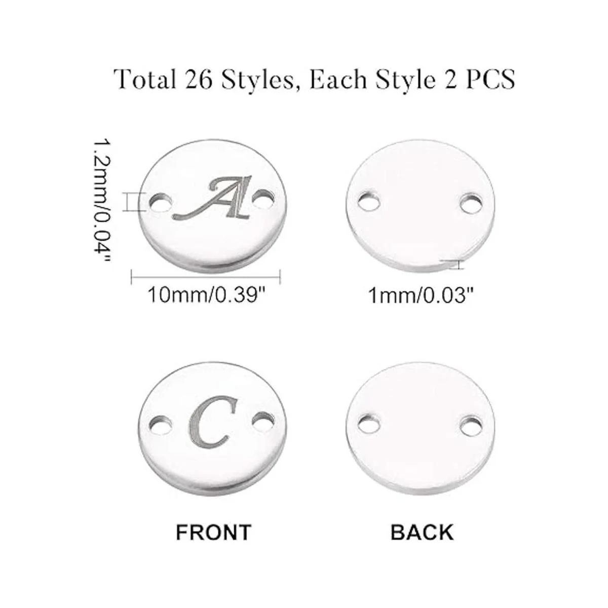 Unicraftale 52 colgantes de acero inoxidable con letras de metal a la Z, redondos, con letras iniciales, 0.047 in, conectores de unión de agujero para hacer joyas de acero inoxidable