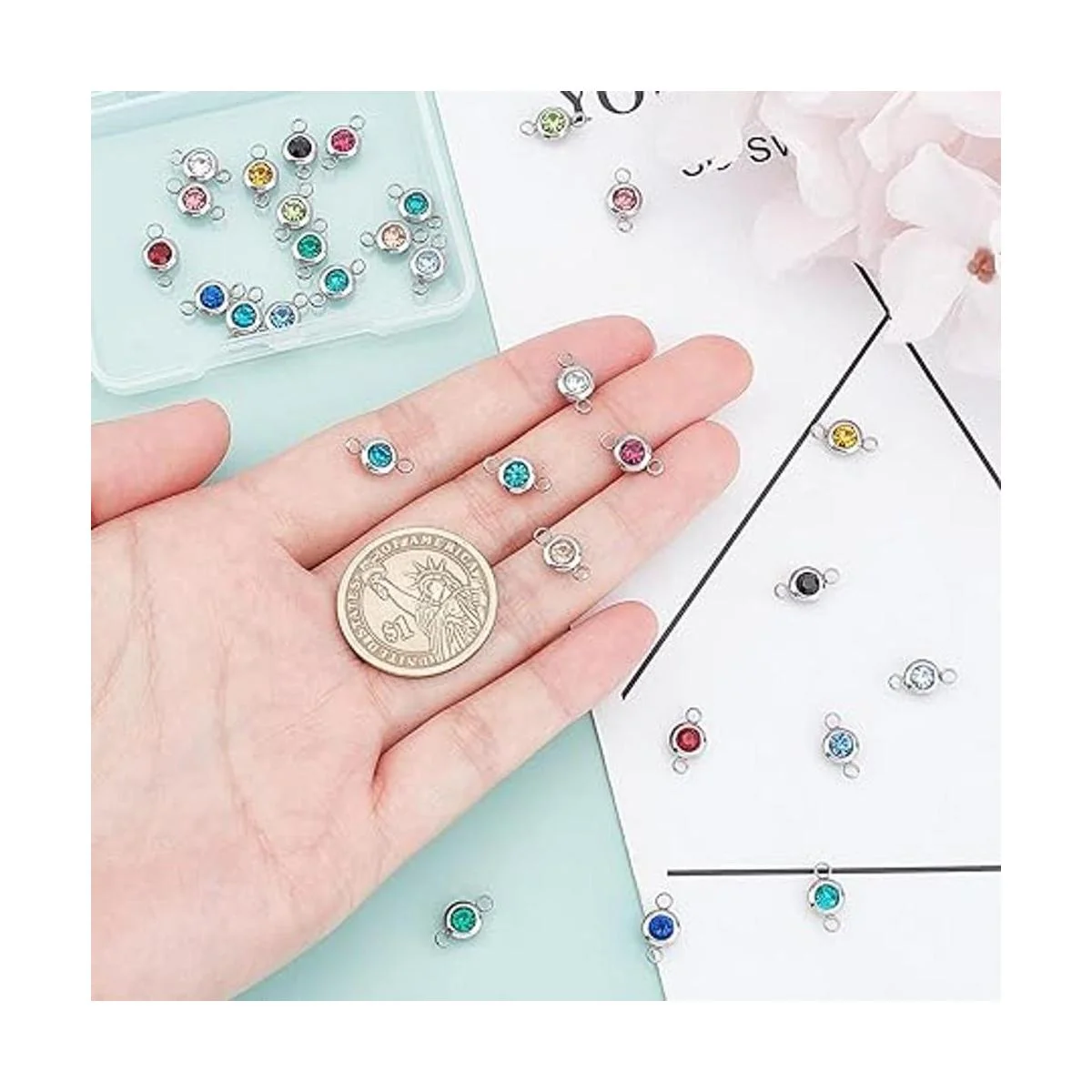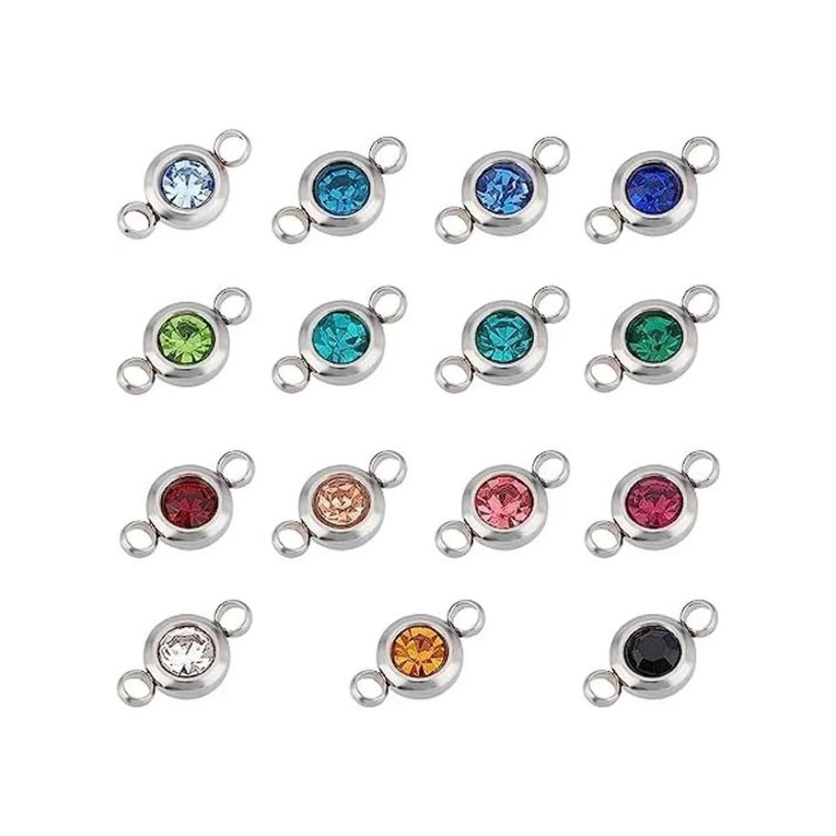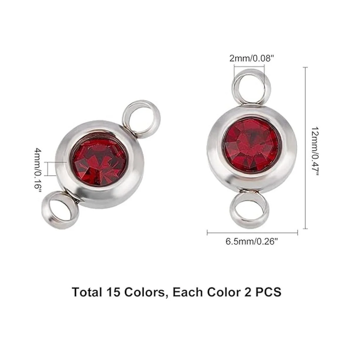 El paquete incluye: contiene alrededor de 30 piezas de conectores de acero inoxidable, cada color alrededor de 2 piezas, alrededor de 0.256 in de ancho, 0.472 in de largo, 0.157 in de grosor, agujero: 0.079 in, son ideales para hacer joyas de bricolaje.