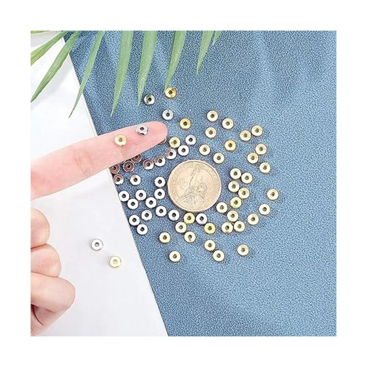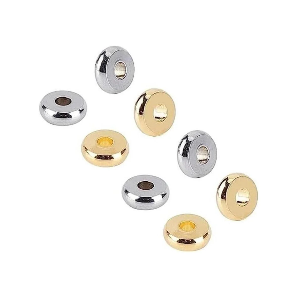 Cuentas espaciadoras: estas cuentas de metal tienen un diseño redondo plano suave, generalmente se utiliza para sostener varios collares de cuentas en alineación y para evitar enredos. Puedes insertarlos a intervalos mientras encordas cuentas para hacer tus propias joyas únicas.