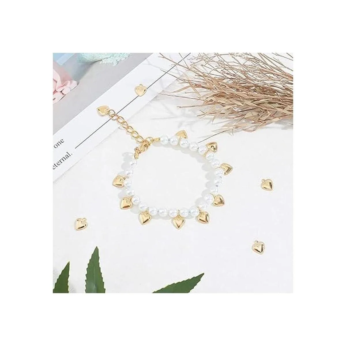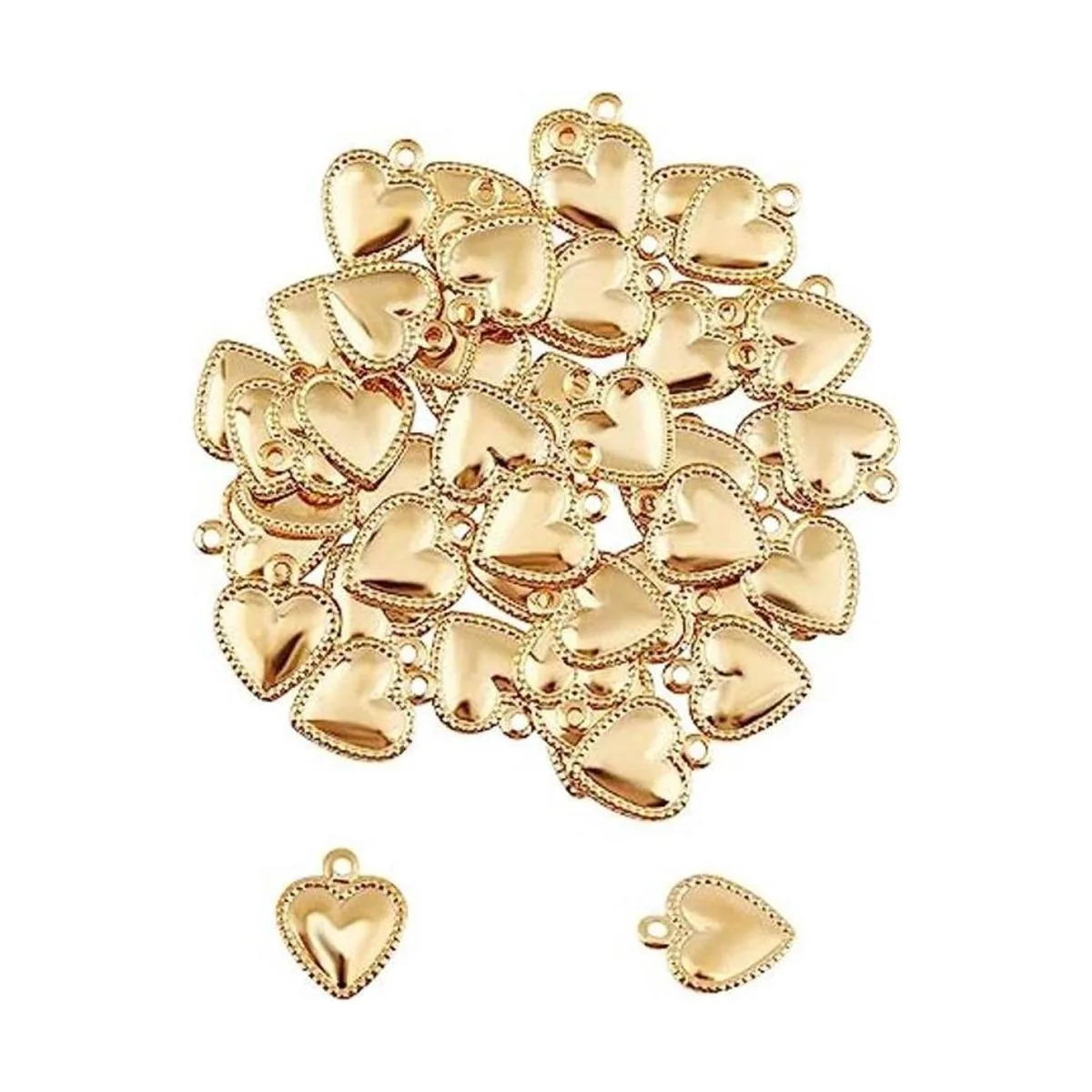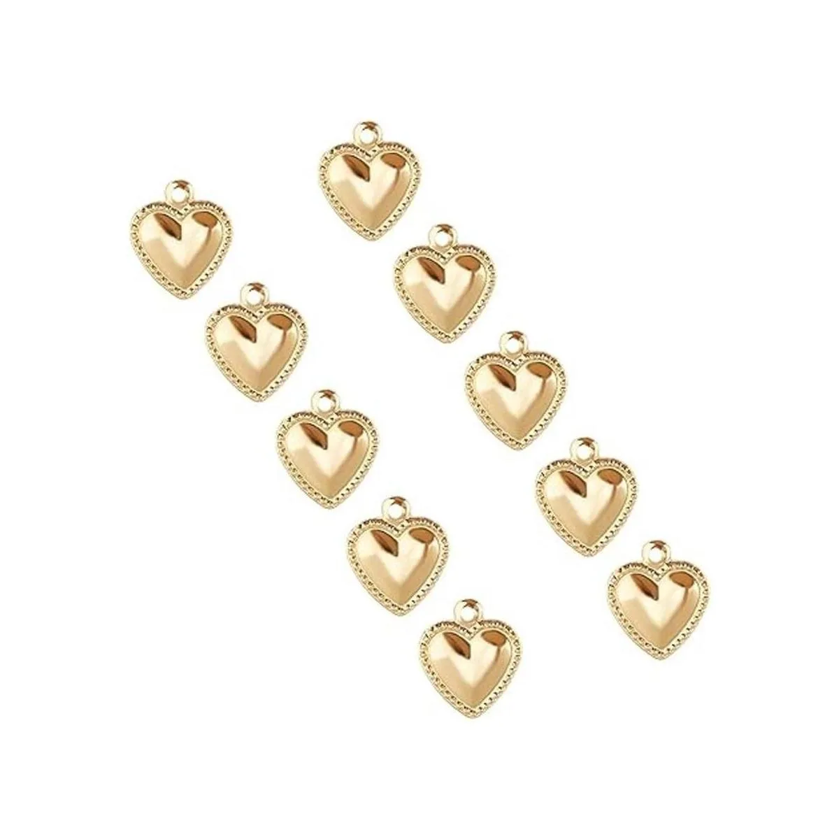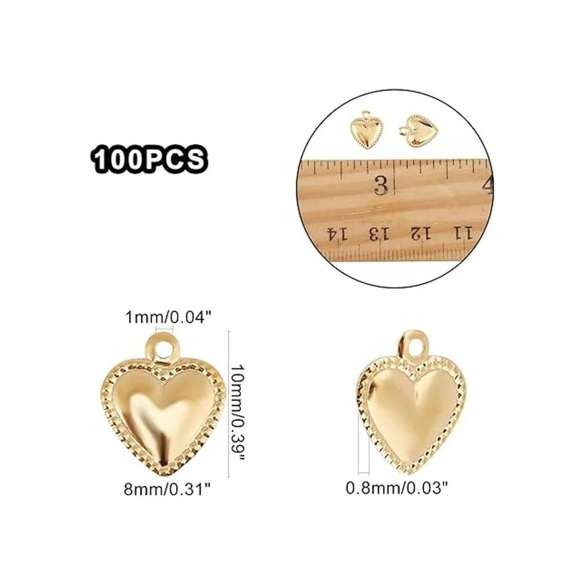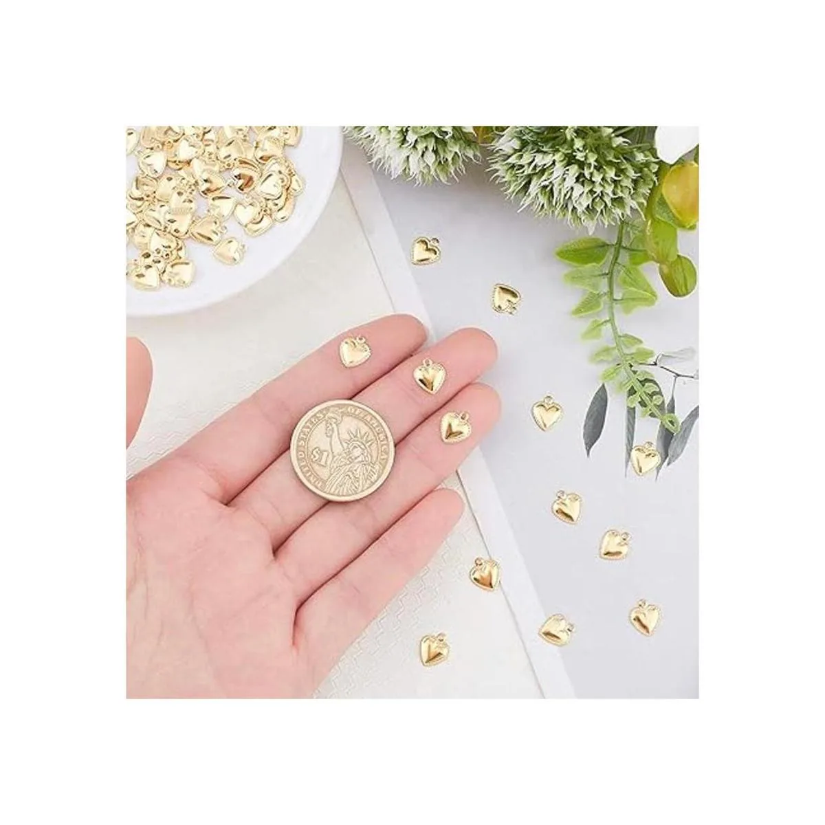 UNICRAFTALE Aproximadamente 100 dijes de corazón hinchado dorado de acero inoxidable 304, dijes de corazón de agujero pequeño de 0.39 pulgadas para hacer collares, pulseras, aretes, joyas, 0.394 x 0.315 x 0.031 in
