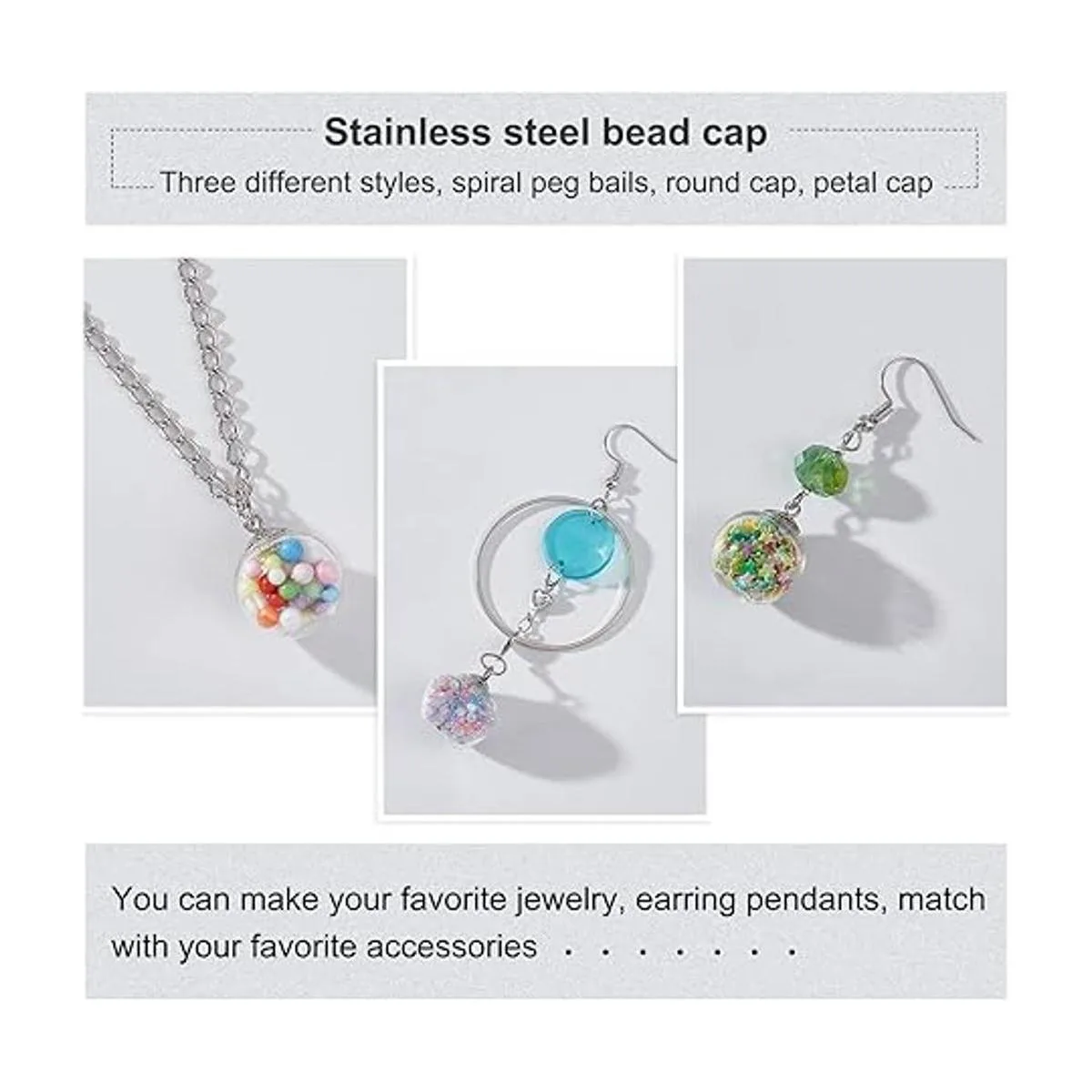 UNICRAFTALE Aproximadamente 60 piezas de dijes para colgar en el conector, con forma de bola, de acero inoxidable, para hacer joyas de bricolaje de 8 10 x 4 0.276 in