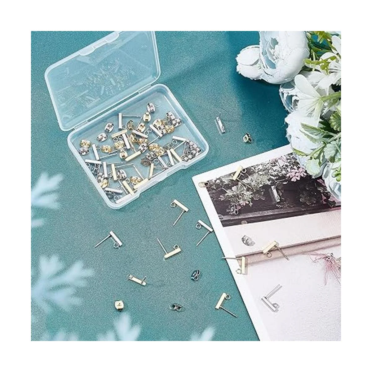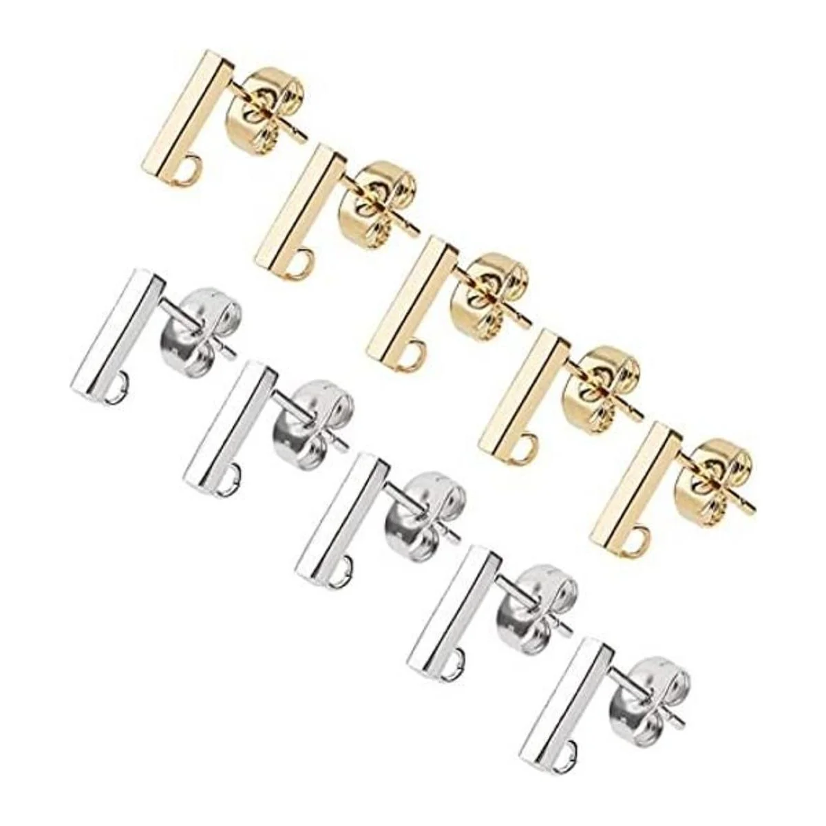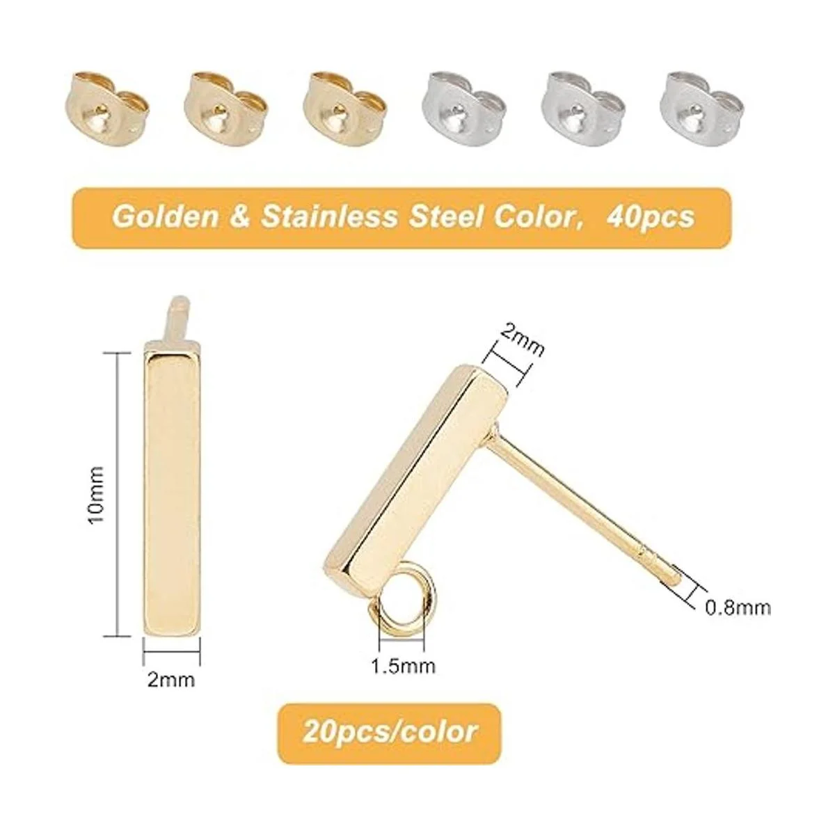 UNICRAFTALE Aretes hipoalergénicos con bucle, 40 piezas de aretes rectangulares con tuerca de oreja de 0.031 in de acero inoxidable para hacer joyas