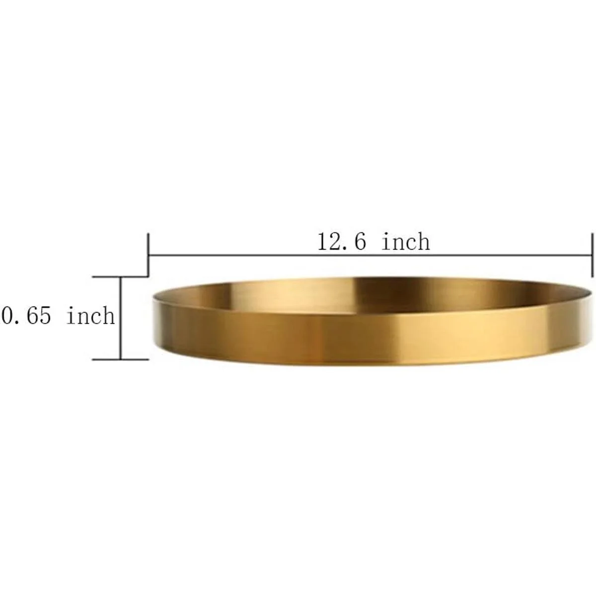 UniDes Bandeja redonda dorada, bandeja decorativa de latón de 12.6 pulgadas para el hogar moderno, bandeja de acero inoxidable para organizador de tocador, perfume, mesa auxiliar, cocina y baño