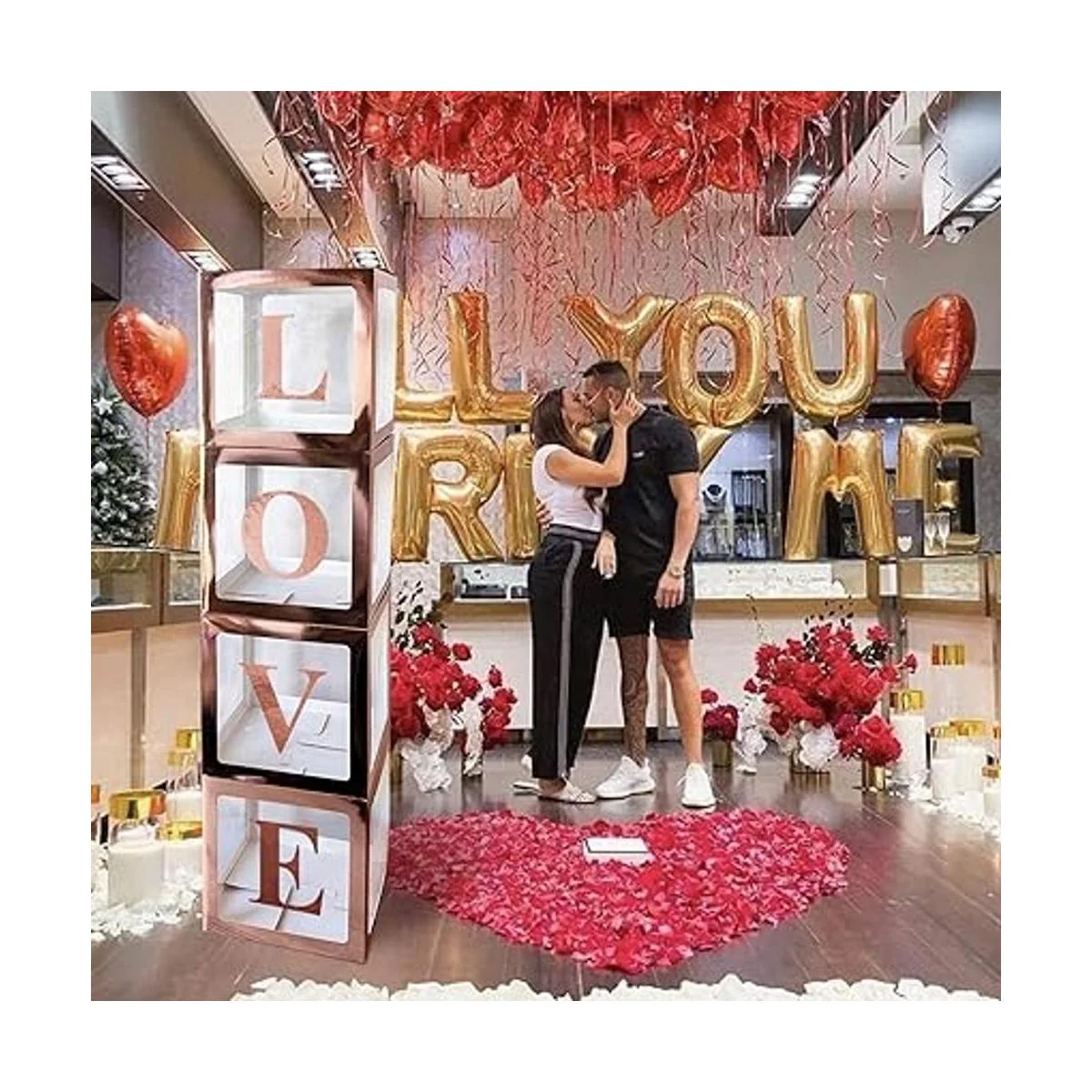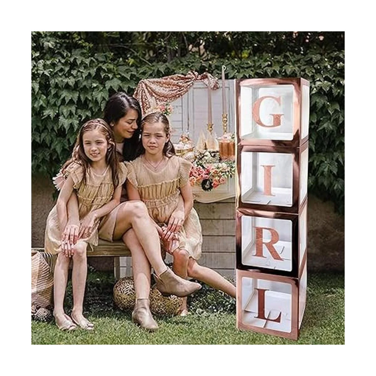 UNIIDECO 4 cajas transparentes de oro rosa para globos con 30 letras 10 números 5 símbolos, caja de regalo transparente ABC, decoración de revelación de género de cumpleaños, decoración de bloques de letras de baby shower, kit de suministros para fiesta