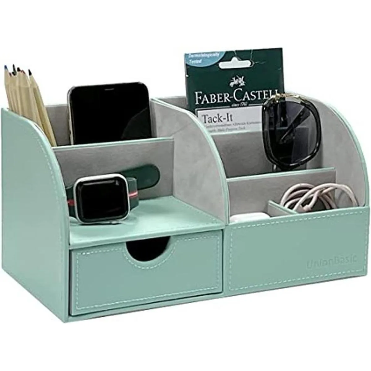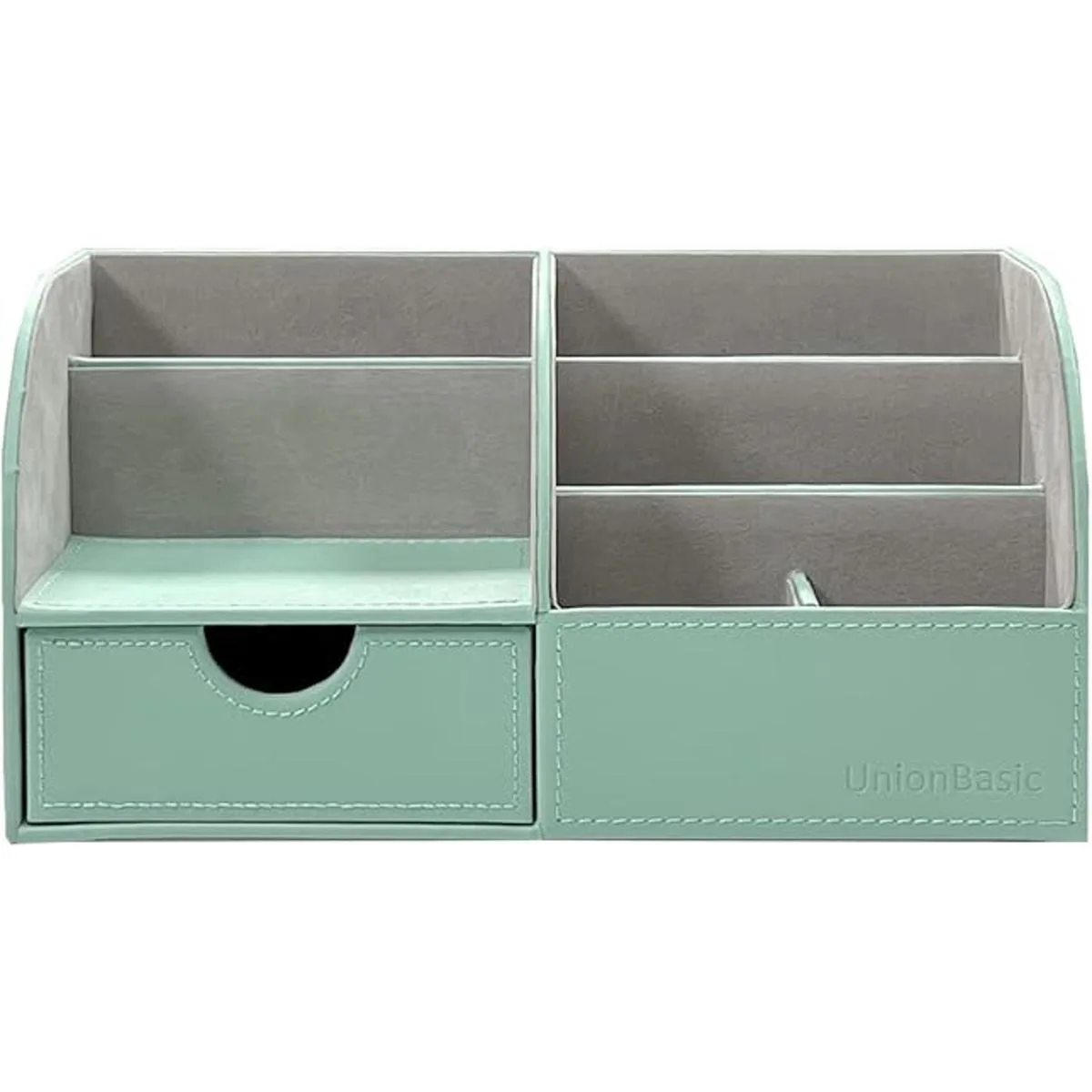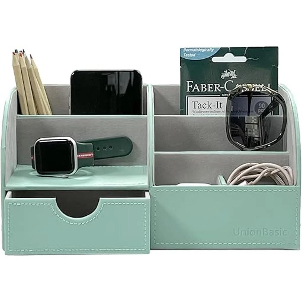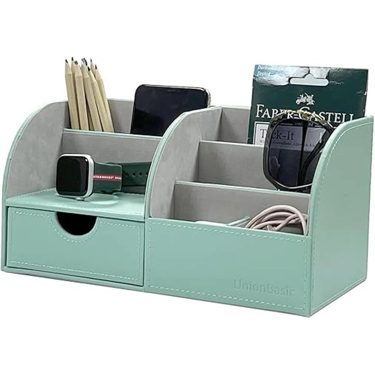 UnionBasic Organizador multifuncional de piel sintética para escritorio u oficina, para tarjetas de negocios, bolígrafos, lápices, teléfono celular, artículos de papelería, cajón de almacenamiento