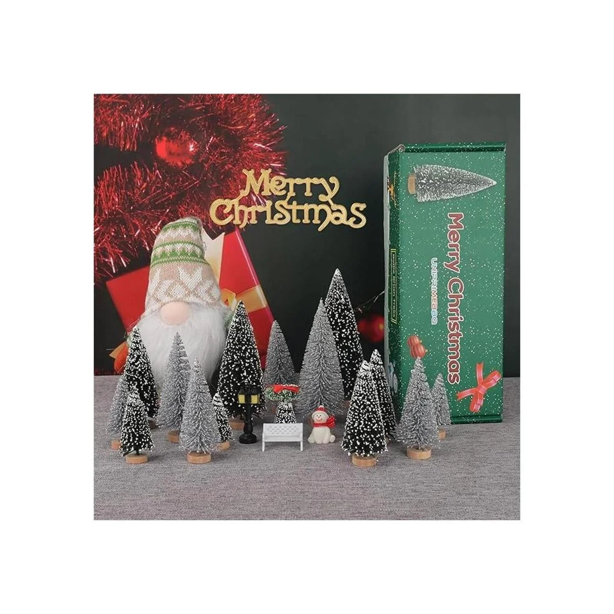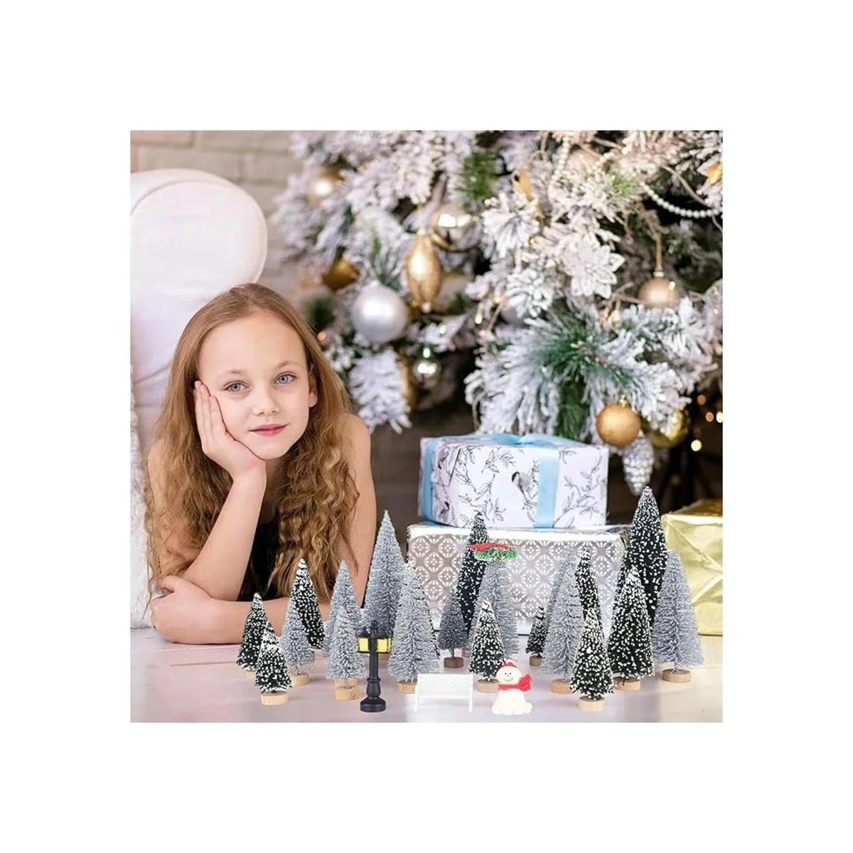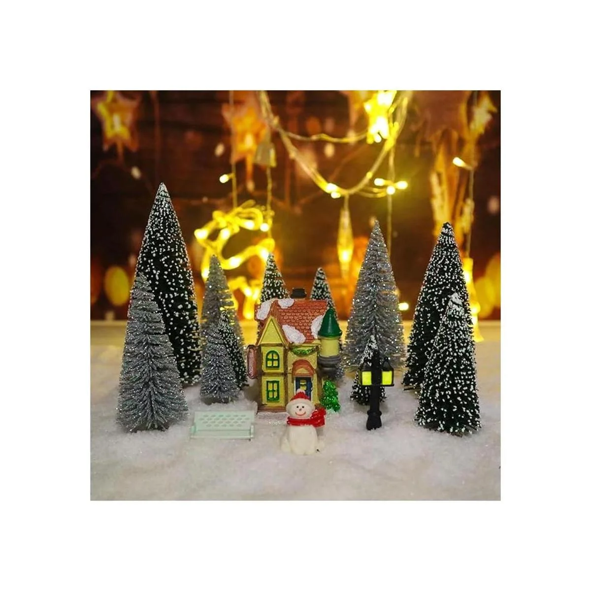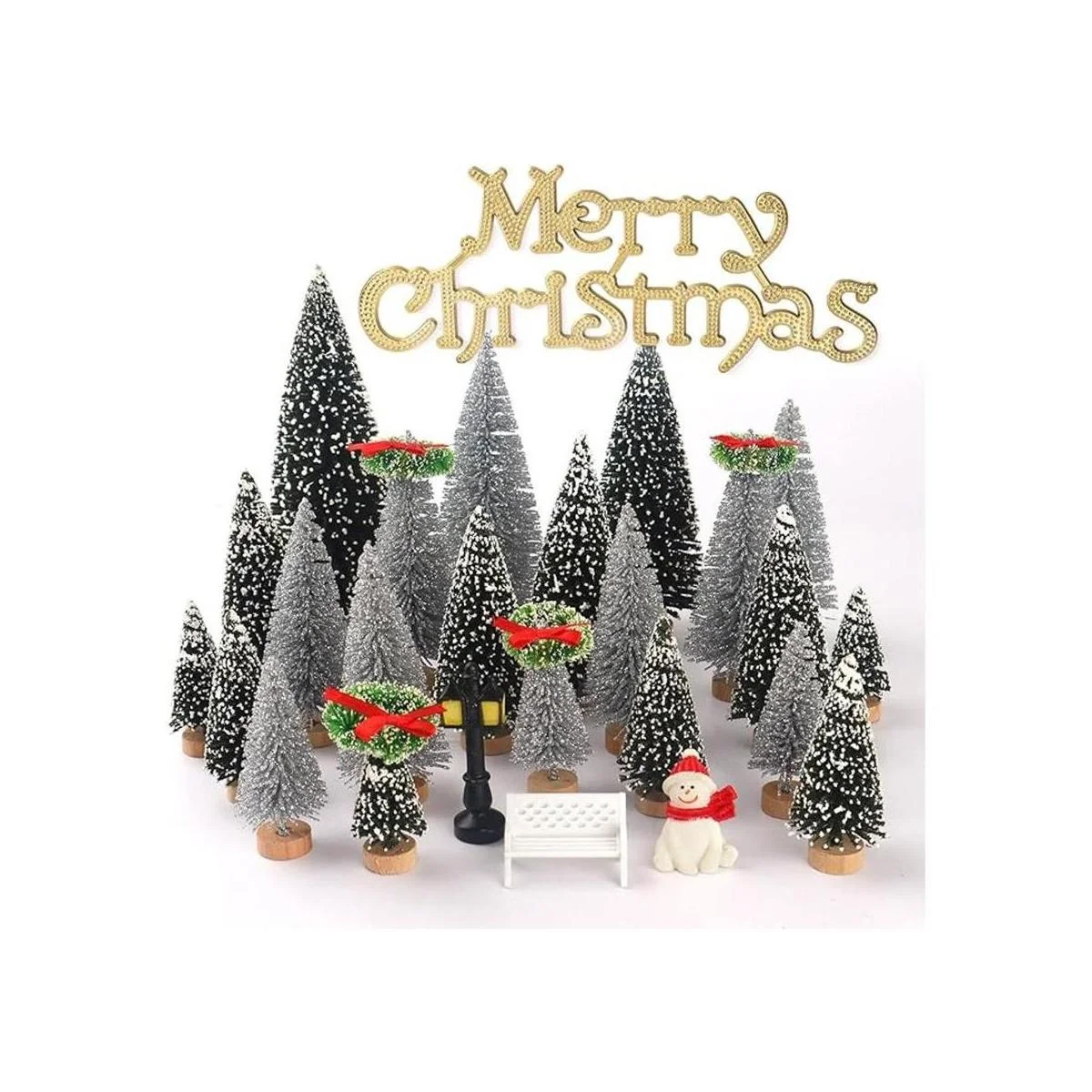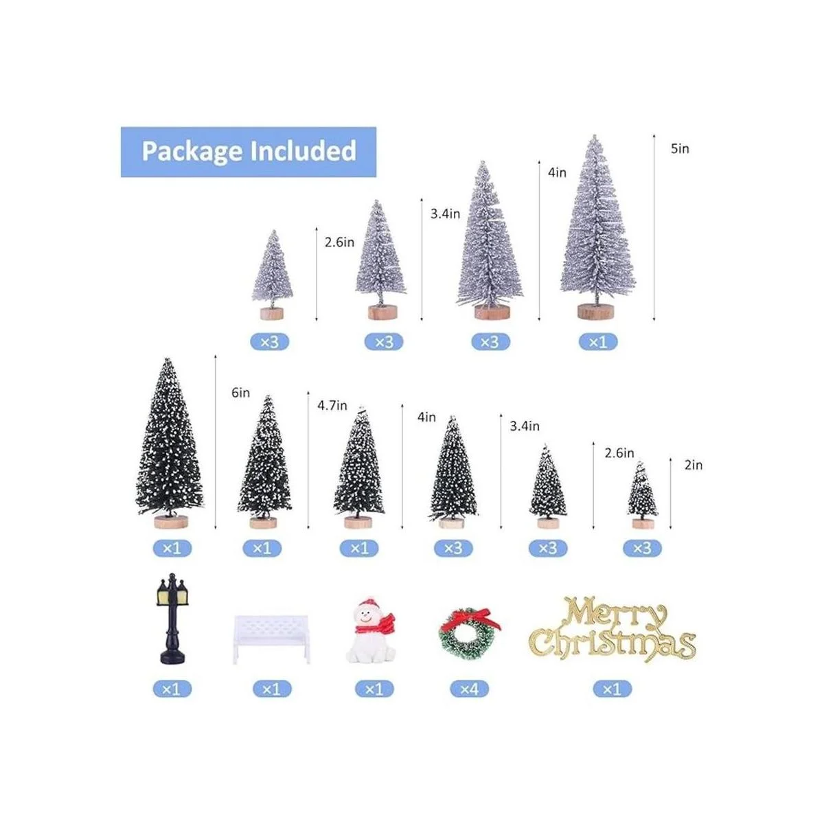 rbol de cepillo para botellas: hay 30 juntos, incluyendo 4 tipos de árboles altos y cortos, para decorar tu pueblo de Navidad, un muñeco de nieve, una silla, una lámpara de calle y 4 guirnaldas pequeñas.