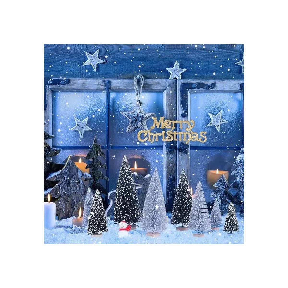 UNIPRIMEBBQ Mini botella de pino de Navidad en miniatura, árboles de base de madera para tu pueblo de escritorio, fiesta de Navidad