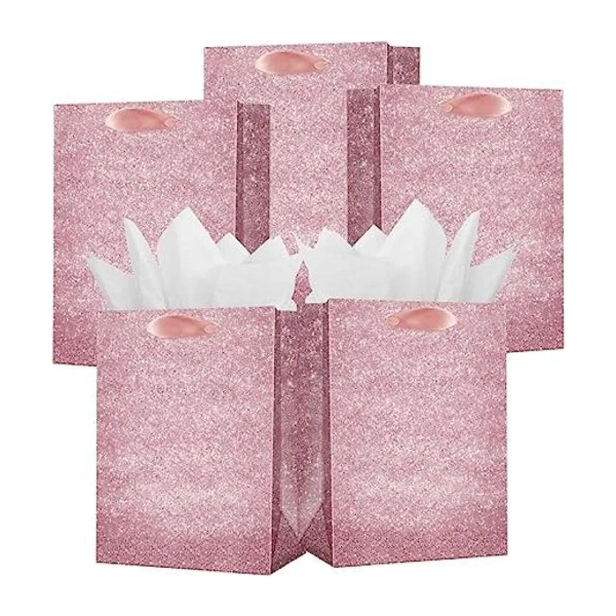 UNIQOOO 12 bolsas de regalo con purpurina rosa en relieve con 24 papeles de seda a granel, M 9 x 7 pulgadas, bolsas de regalo de oro rosa, bolsa de regalo de boda, embalaje de regalo para Navidad, baby shower, fiesta de cumpleaños y vacaciones