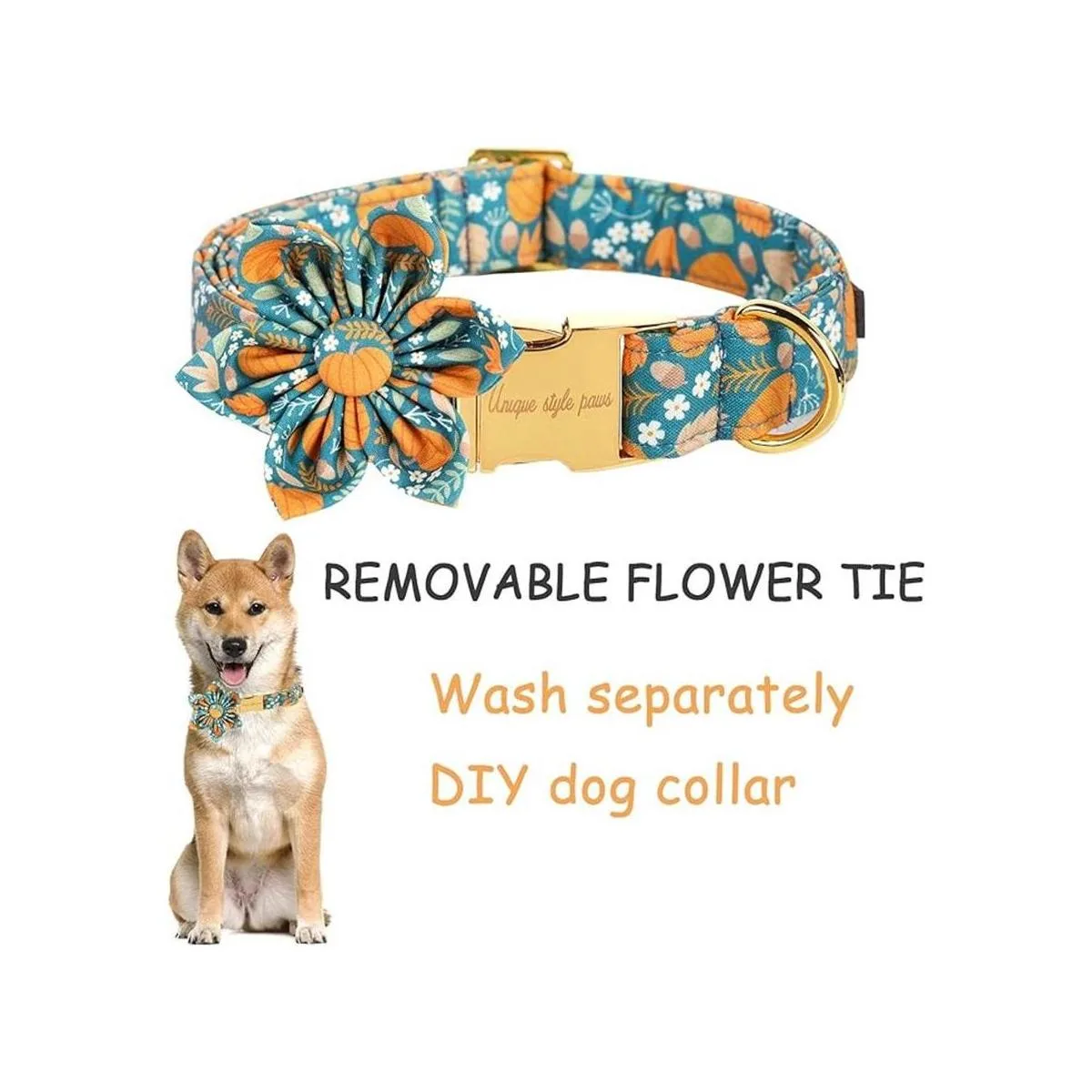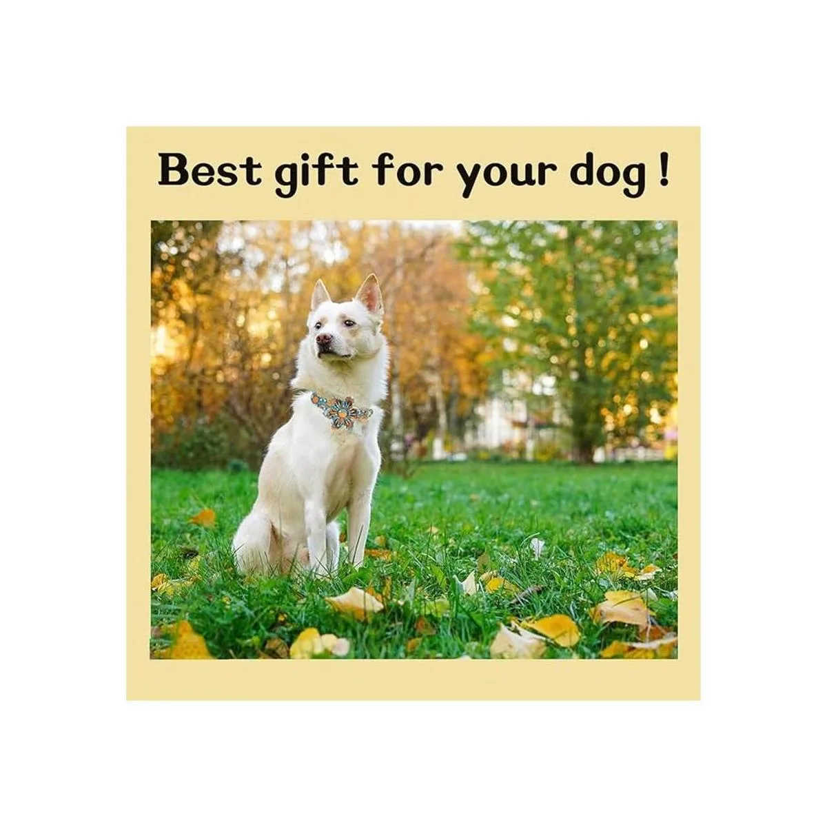 Pajarita extraíble : la corbata de flores del collar de perro de Navidad es desmontable. La corbata tiene dos bandas elásticas, pasa la corbata a través del collar del perro o átala a cualquier otro collar. Puedes hacer tu collar de perro.