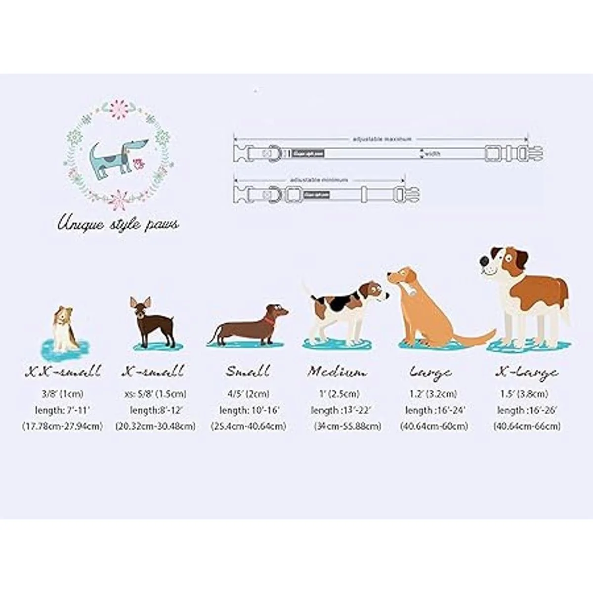 Resistente: anillo en D grueso soldado para añadir durabilidad, hacemos una doble puntada de caja en todos los puntos de tensión para mayor resistencia. Estos collares son suaves, flexibles, modernos y ajustables. El metal se rayará si se coloca en la lavadora, por lo que sugerimos lavar a mano.
