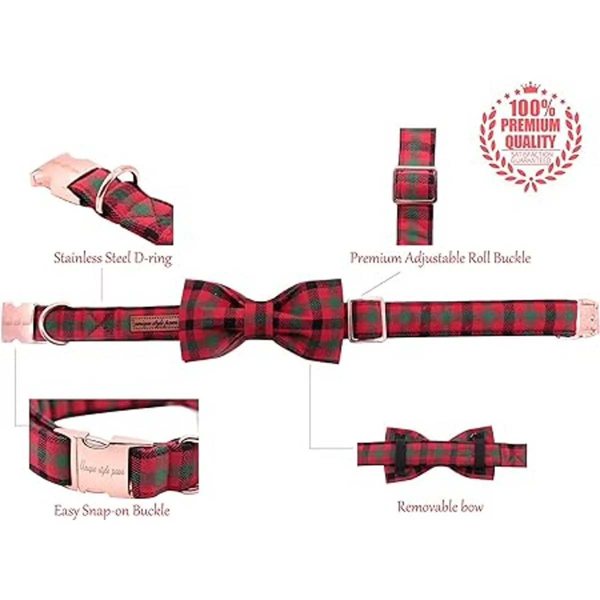 Unique style paws Collar de perro de Navidad, collar de cachorro con corbatín, collar ajustable para perro, regalo de mascotas para perros pequeños, medianos y grandes