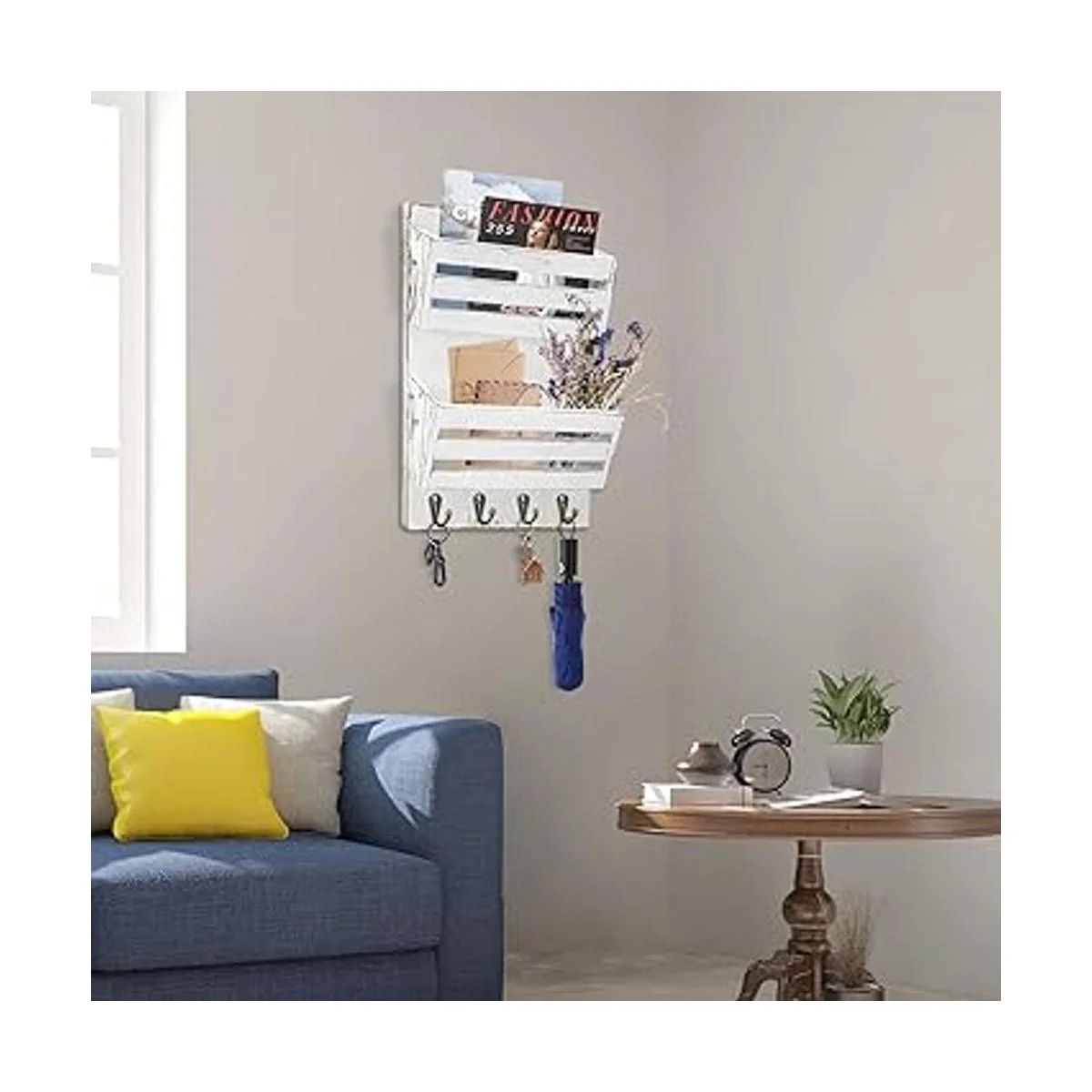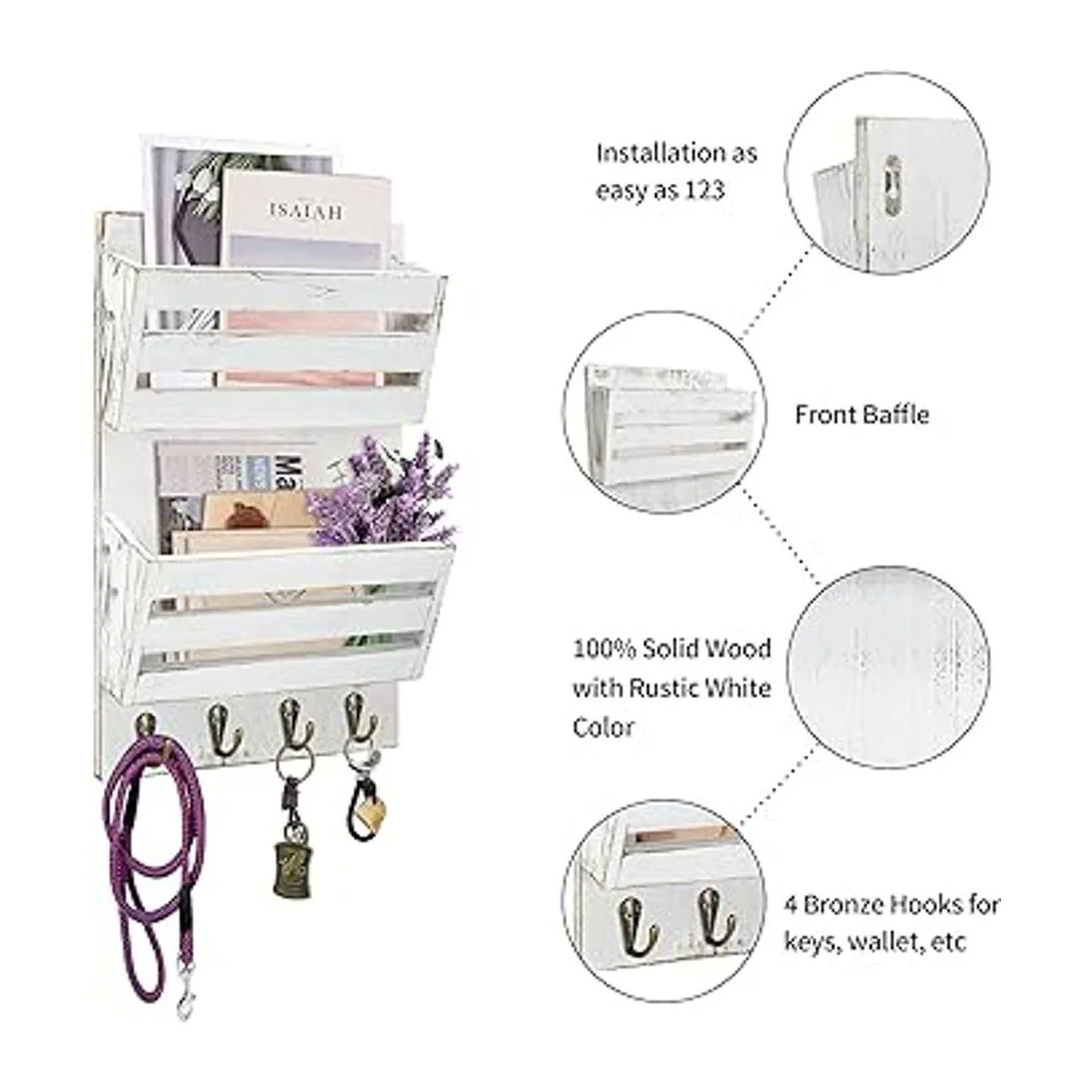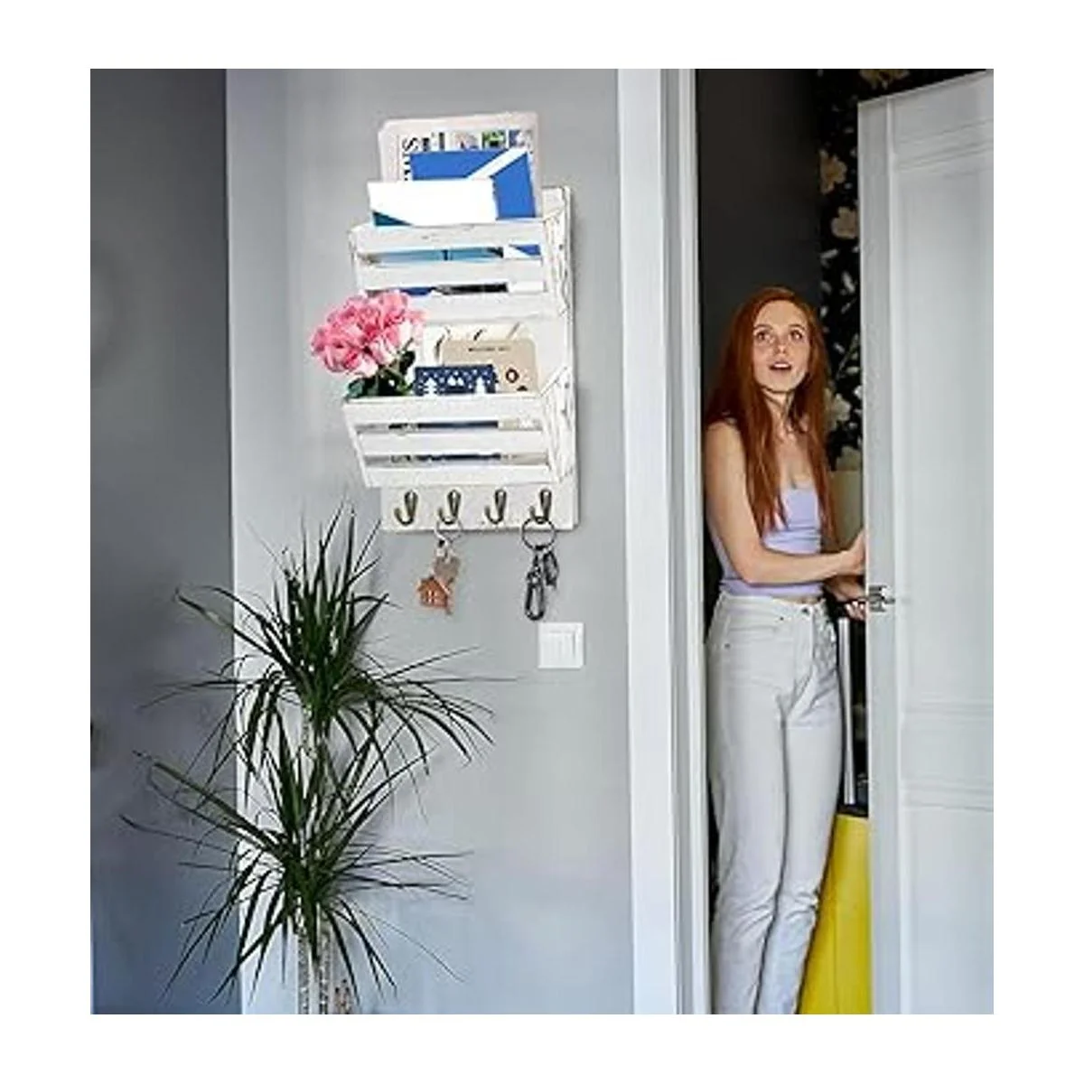 Unistyle Organizador de correo colgante con 4 ganchos para llaves, soporte de pared para correo, soporte de pared para billetes y letras para pared, soporte de llaves para pared, soporte de llaves para cartas, revistas, llaves, correas de perro