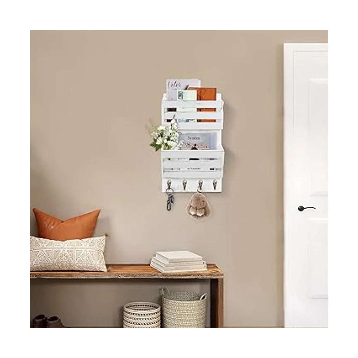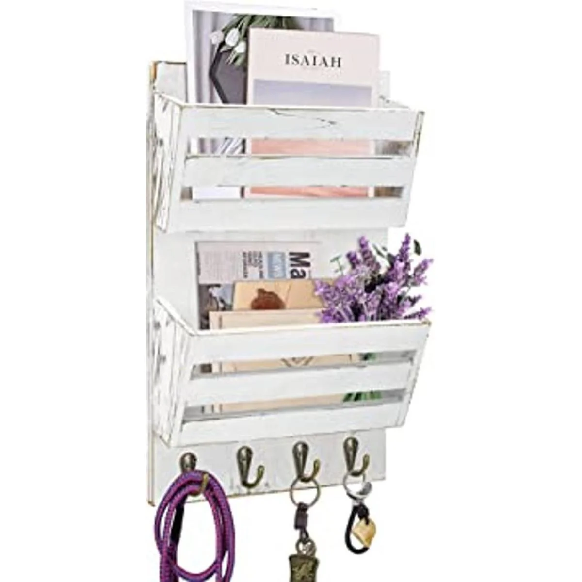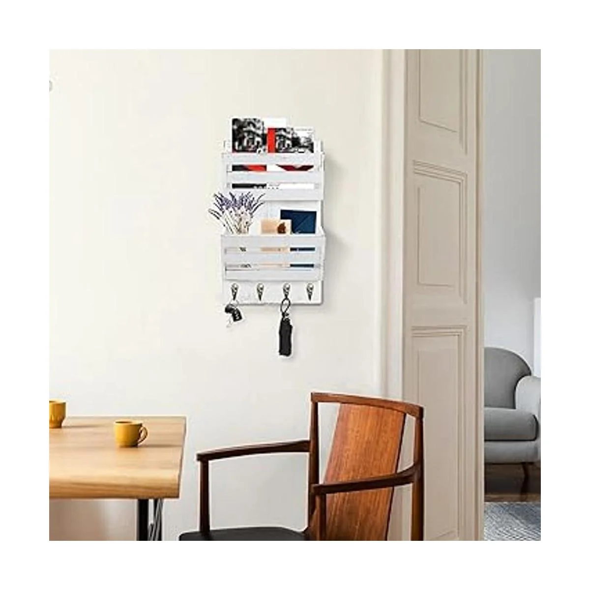 Unistyle Organizador de correo colgante con 4 ganchos para llaves, soporte de pared para correo, soporte de pared para billetes y letras para pared, soporte de llaves para pared, soporte de llaves para cartas, revistas, llaves, correas de perro