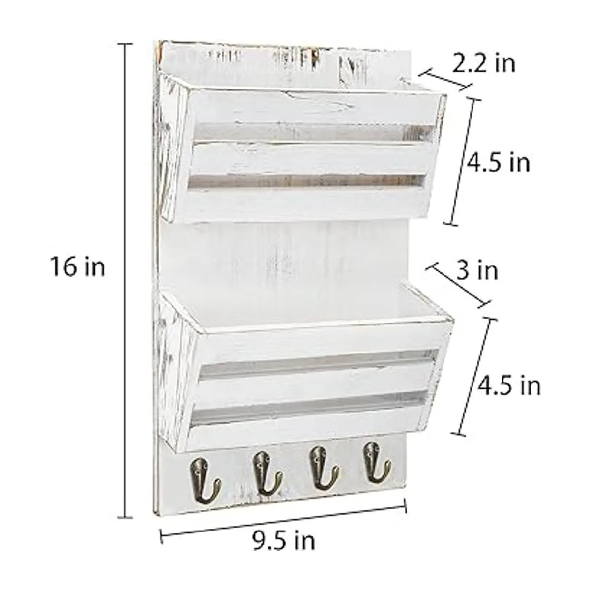 Organizador mágico de correo de pared y cartas: nuestro soporte para llaves y correo para pared hacen que los papeles y archivos desordenados se conviertan en un aspecto totalmente organizado. Viene con 4 soportes para llaves, nunca te perderás las llaves de nuevo Tamaño: 10 pulgadas de largo x 3.46 pulgadas de profundidad x 16.14 pulgadas de alto. El soporte decorativo para correo con ganchos para llaves ayuda a sacar a tu familia de la puerta rápidamente al trabajo y la escuela. Un lugar práctico para correas, cordones de identificación, sombreros y gafas de sol, también tiene un estante flotante para chucherías