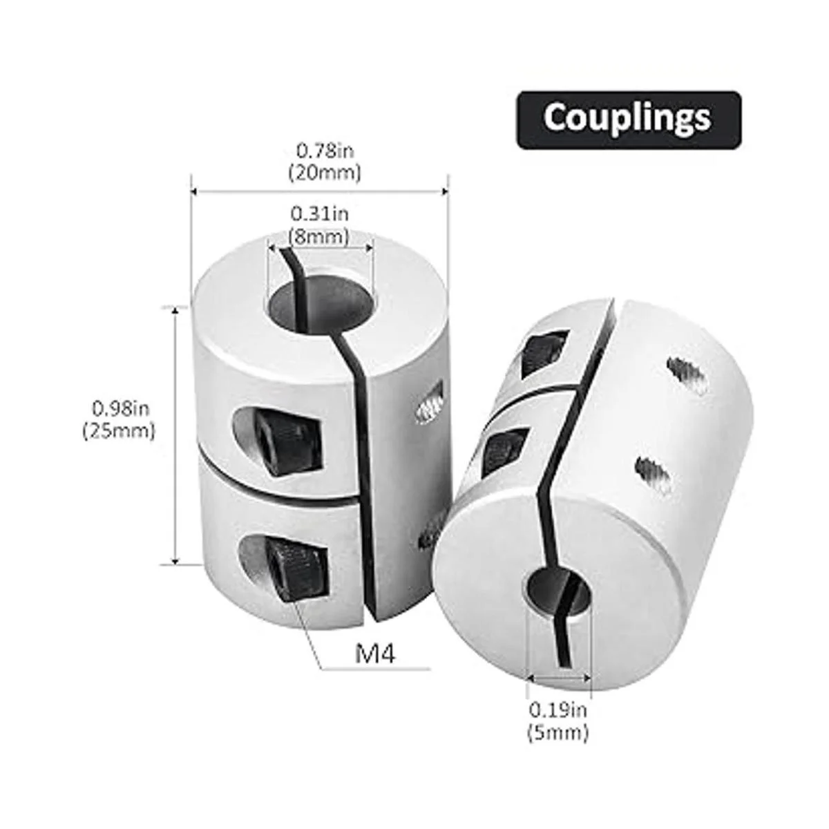 Uso: el acoplador de eje de 0.197 in a 0.315 in puede fijar la oscilación del eje Z y eliminar la tensión entre el motor y las piezas de accionamiento cuando los ejes no están perfectamente alineados.