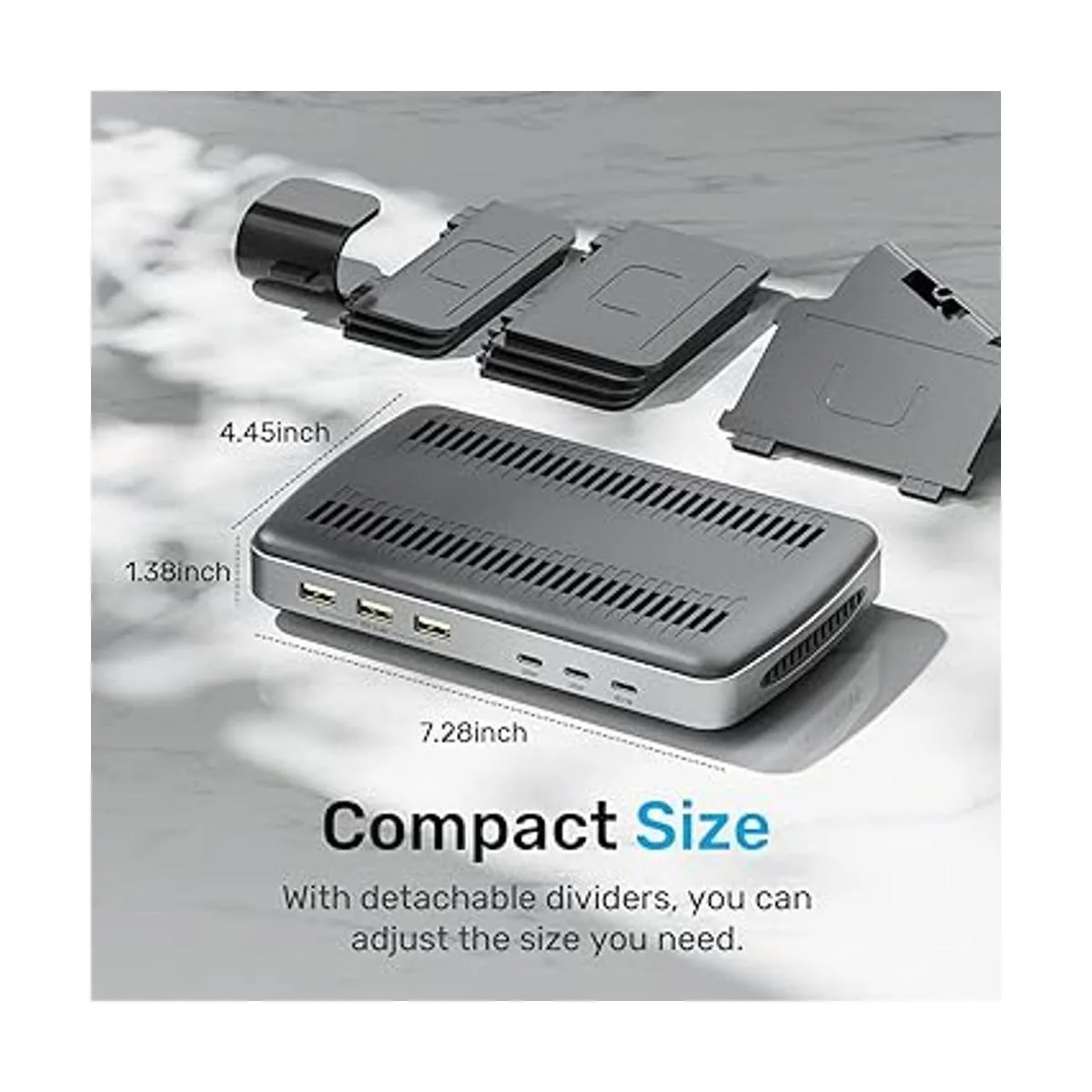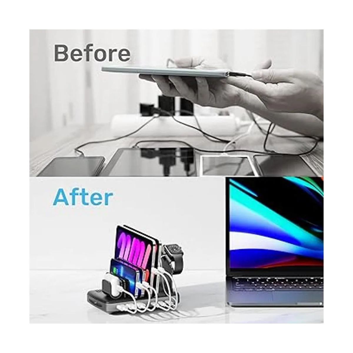 Divisores extraíbles: ajusta el ancho fácilmente a cualquier tamaño que necesites, sujeta tu interruptor, teléfonos, tabletas, incluso están en las fundas y evita que tus dispositivos se rayen. Perfecto para todas las generaciones de iPad y iPhone, tabletas Samsung, lectores electrónicos incluso en fundas protectoras. Con el nuevo soporte para iWatch y Airpods, todos tus dispositivos electrónicos se cargan en un solo lugar, limpios y organizados.