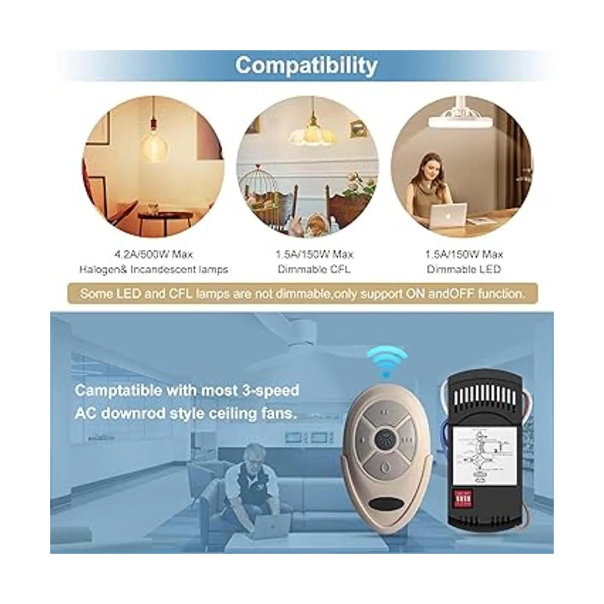 Universal Ceiling Fan Remote Control Kit Dimmable, Replacement for Hampton Bay, Hunter,AllenRoth Kichler, FAN28R L3HFAN35T1 FAN35T1 L3HFAN35T FAN35T KUJCE9603 UC7202T CHQ7202T