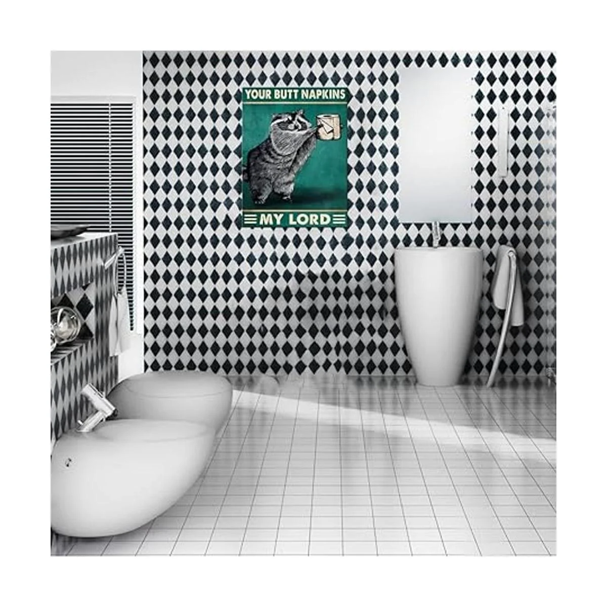 UNIYA Póster de inodoro divertido diseño de animales de mapache, arte de pared, lienzo para decoración de baño, servilletas de My Lord, póster para decoración de pared de dormitorio, impresión de marco 16 x 24 pulgadas, mapache divertido