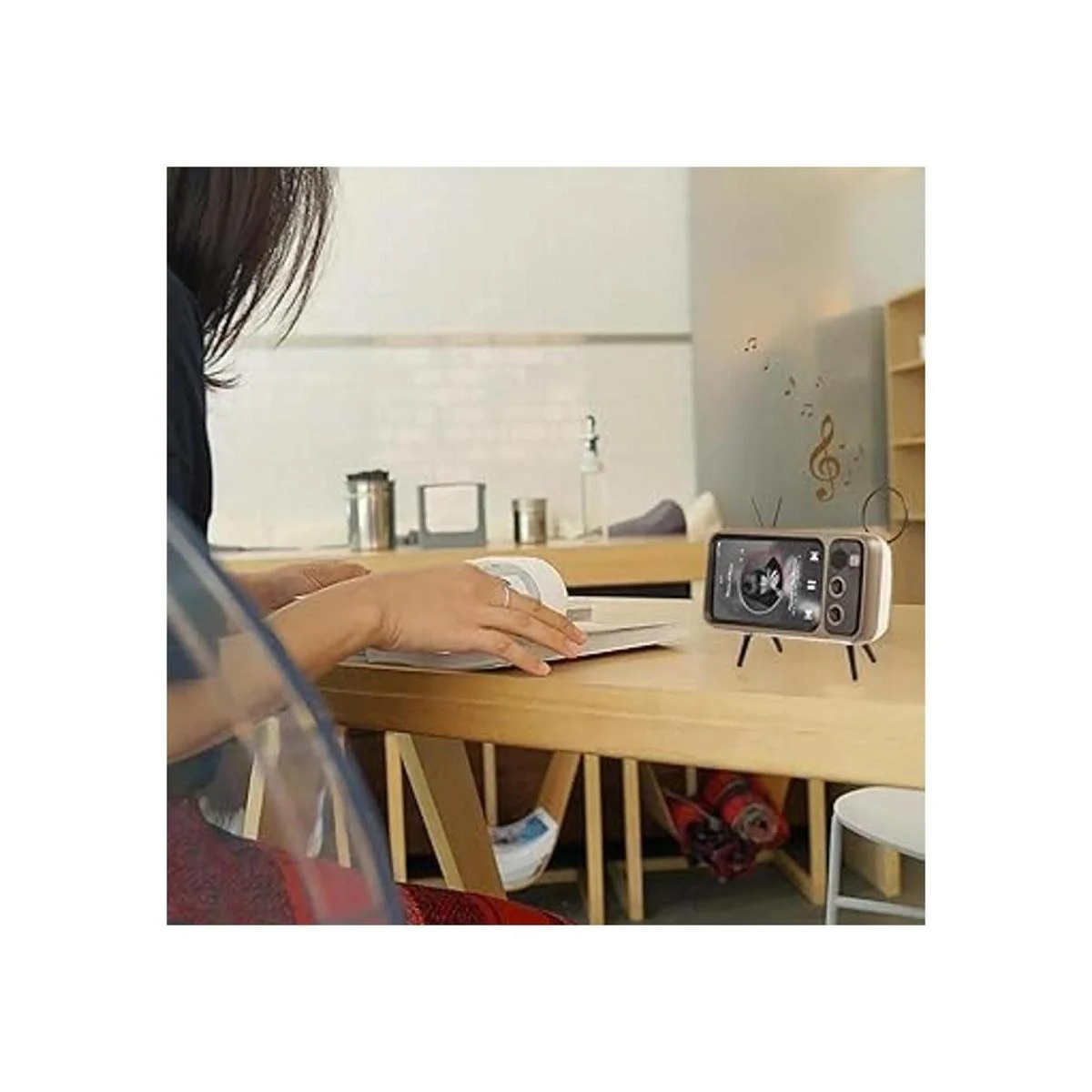 UnnFiko Altavoces Bluetooth inalámbricos estilo TV retro, soporte de escritorio de dibujos animados, universal para Samsung iPhone 12 13 14 11 Pro Max TV marrón Bluetooth