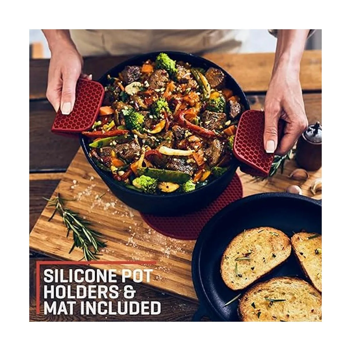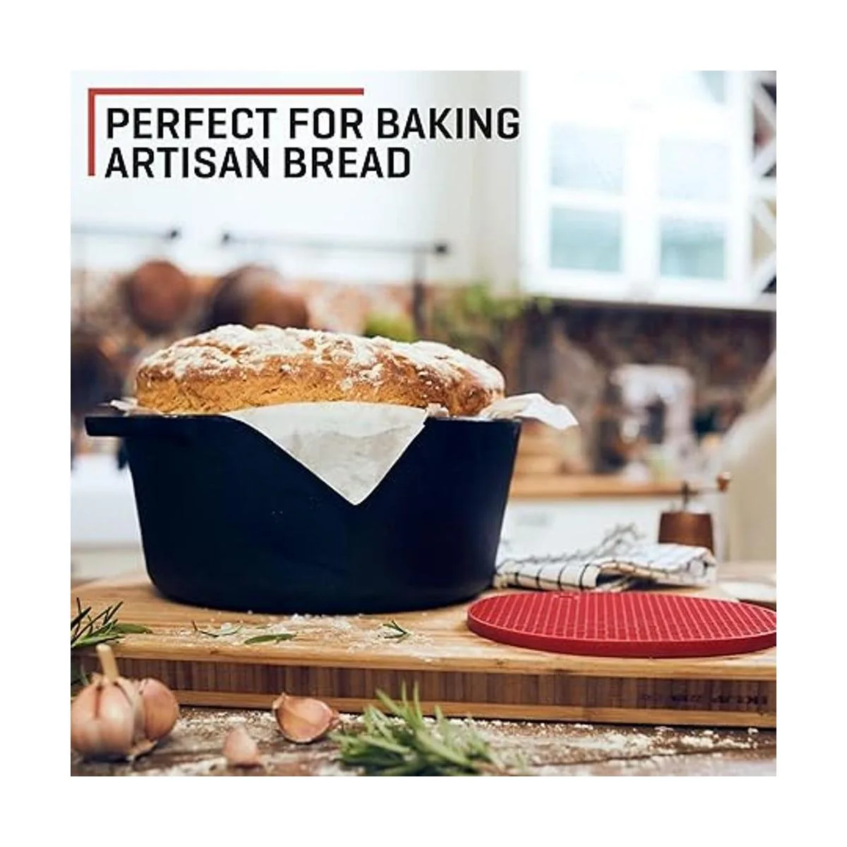 Juego de accesorios: con tu compra de horno holandés de 5 cuartos de galón, obtendrás extras El salvamanteles de silicona añadido y 2 agarraderas te protegen y las mesas del calor, mientras que el libro electrónico de recetas de pan descargable te dará consejos e inspiración