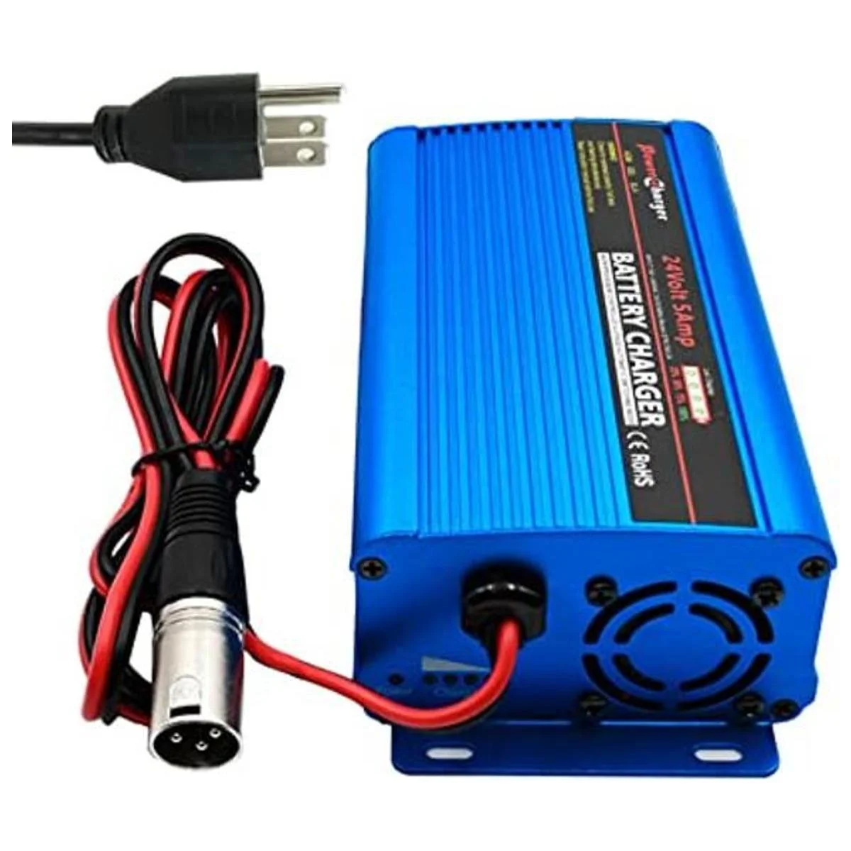 Unocho Cargador de batería de 24 V, cargador inteligente automático de 5 A, cargador de goteo con conector XLR de 3 pines para scooter, silla de ruedas, automóvil, motocicleta, eBike cortacésped, barco marino