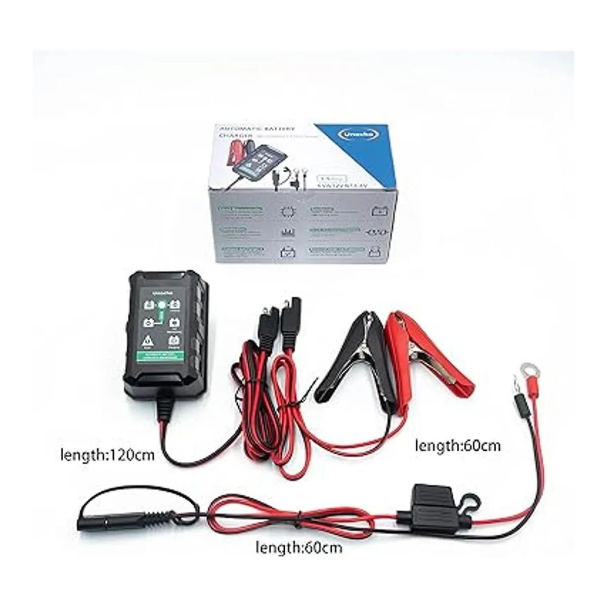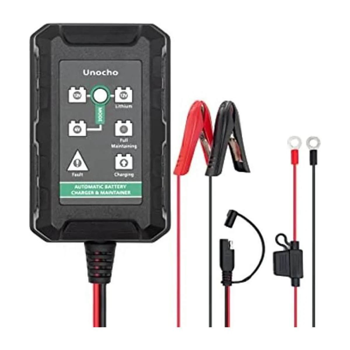 Unocho Cargador de batería de litio LiFePO4 de 12 V de 14.4 V de reparación automática, cargador de batería inteligente inteligente, cargador de batería de plomoácido, cargador de goteo de 6 V 1.5 A