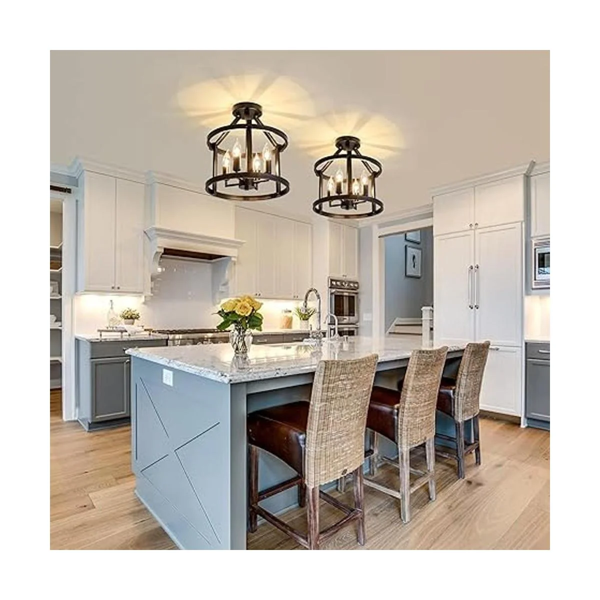 Material: metal duradero con un negro. La pantalla de rejilla de diamante te traerá una buena transmisión de luz, perfecta para comedor, sala de estar, cocina, vestíbulo, pasillo, ofrece un marco perfecto para una isla de cocina.