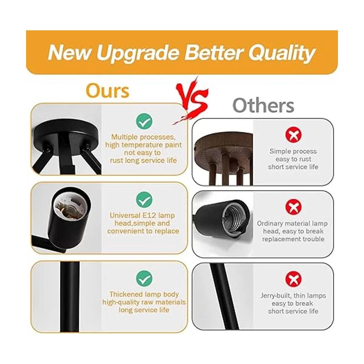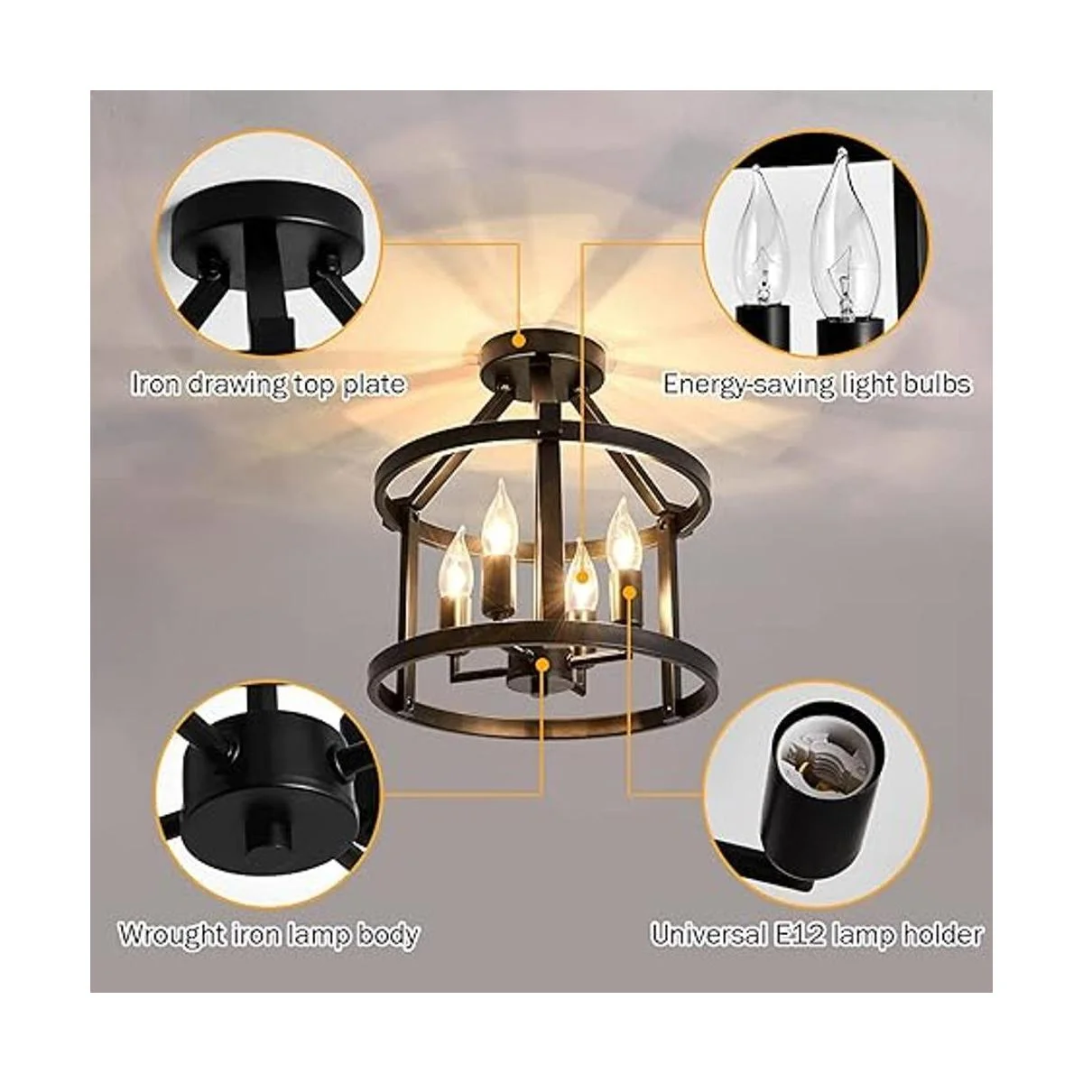 Enchufe estándar E12: diseñado con enchufe de bombilla E12, compatible con una variedad de bombillas Edison y bombillas incandescentes, cada uno con un máximo de bombillas de 40 a 60 W. Si quieres atenuar, añade bombillas de atenuación y controladores. Las bombillas y los controladores de atenuación no están incluidos en el paquete. ..